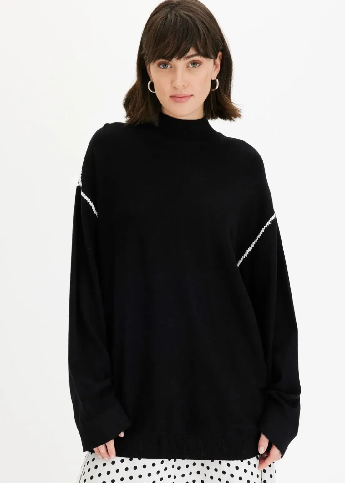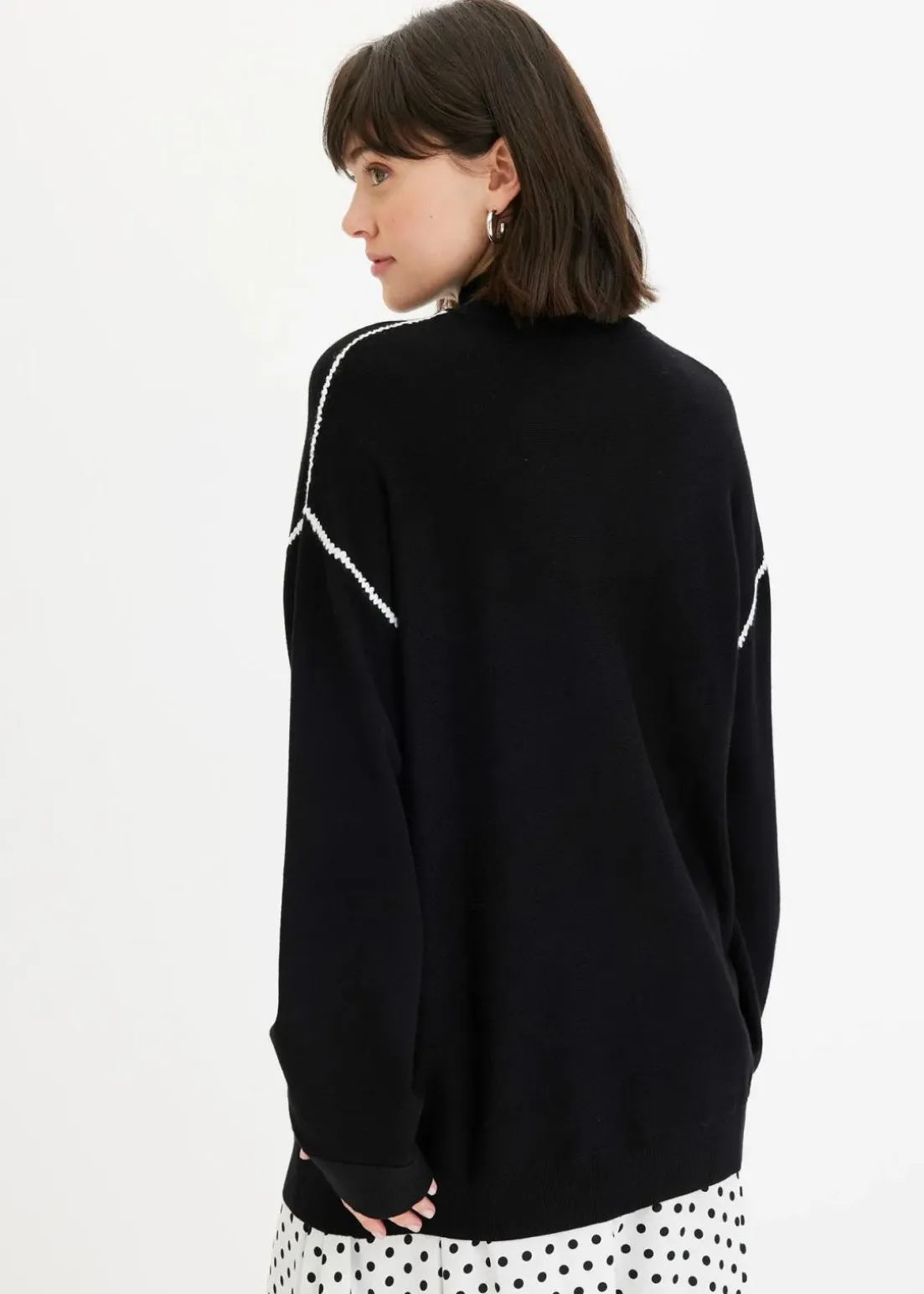 Einfarbiger Stickpullover mit kontrastfarbendem Zierstich