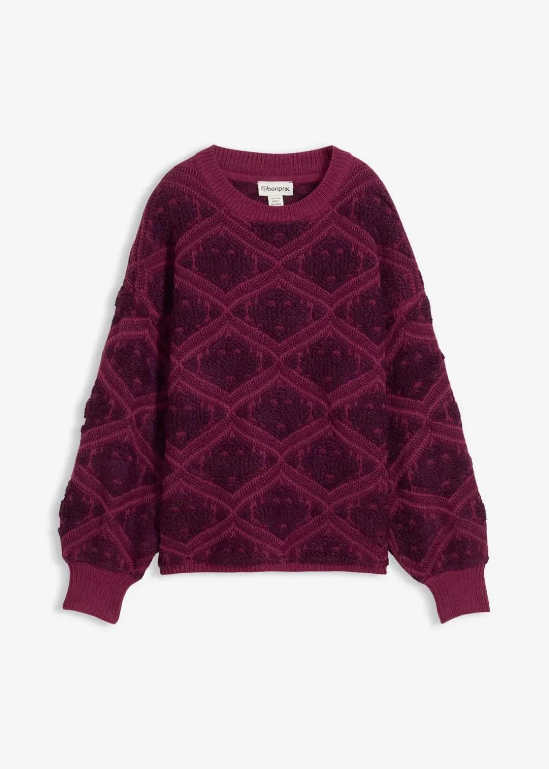 Modischer Jacquard Pullover mit Rundhalsausschnitt