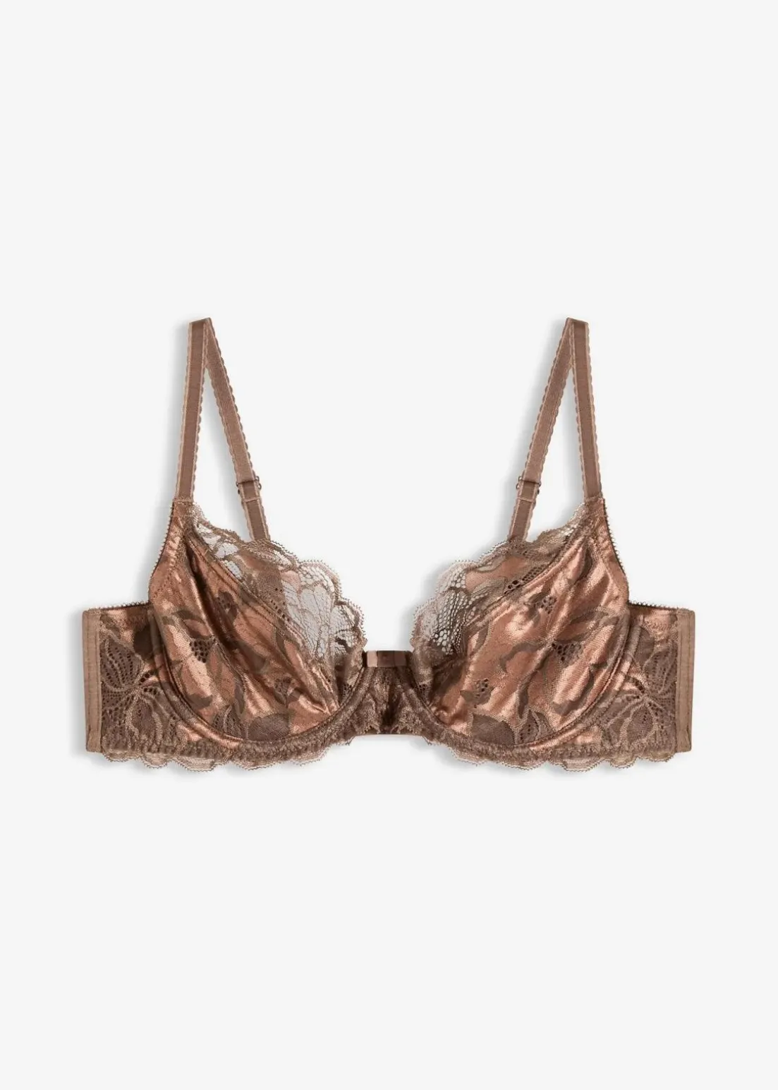 Bügel-BH aus zweifarbiger Spitze und mit raffinierten Trägern.