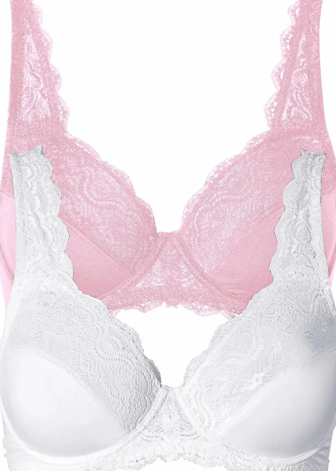 Hochwertige Spitze schmückt den attraktiven Bügel-BH. Sie ziert die obere Hälfte der Cups und verläuft harmonisch bis in die Träger. Ein tolles Basic im Doppelpack für jeden Tag.