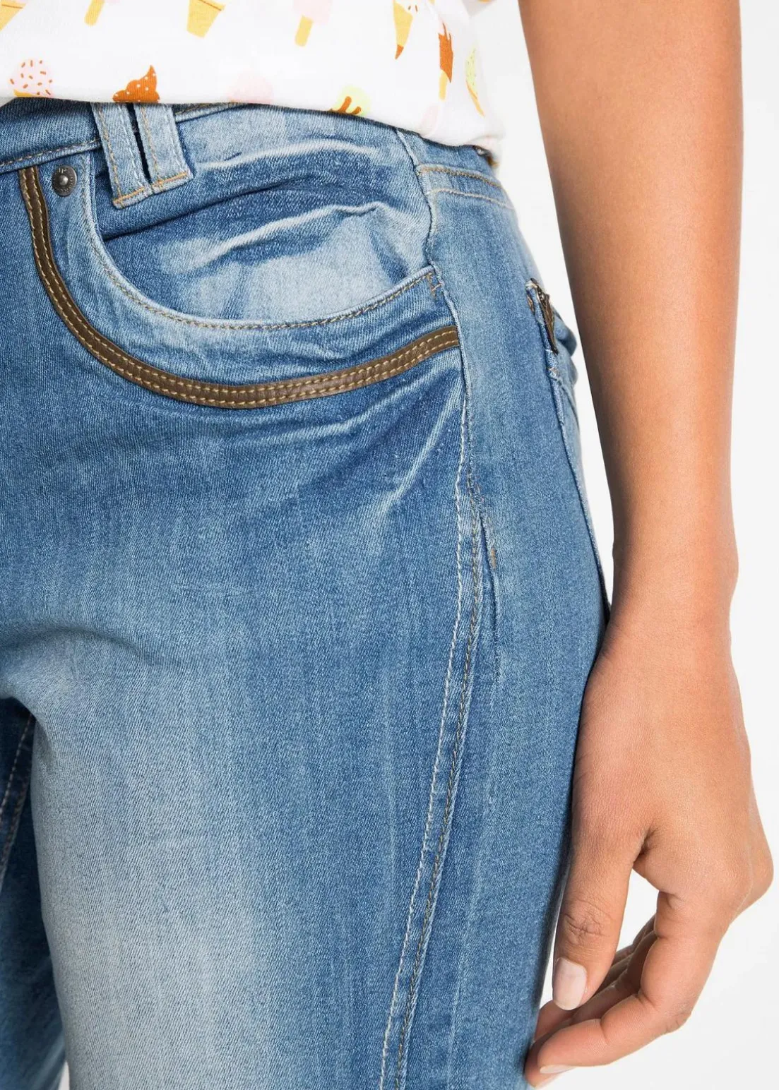 Modische 3/4-Jeans mit dekorativen Details aus Lederimitat