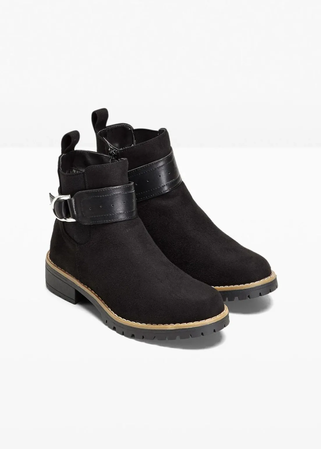 Die lässige Stiefelette von bpc ist ein bequem und alltagstauglich. Mit ihrer profilierten Laufsohle und dem robusten Obermaterial ist sie für jedes Wetter gerüstet. Der Schuh passt sich aufgrund des seitlichen Gummieinsatzes individuell an den Fuß an. So ist der halbhohe Stiefel angenehm und komfortabel zu tragen. Verschlossen wird der Schuh über einen Reißverschluss. Besonders dekorativ ist der Zierbeleg mit Schnalle. Mit diesem schicken Detail kann die lässige Stiefelette von bpc auch zu sportlichen Röcken und Kleidern kombiniert werden.