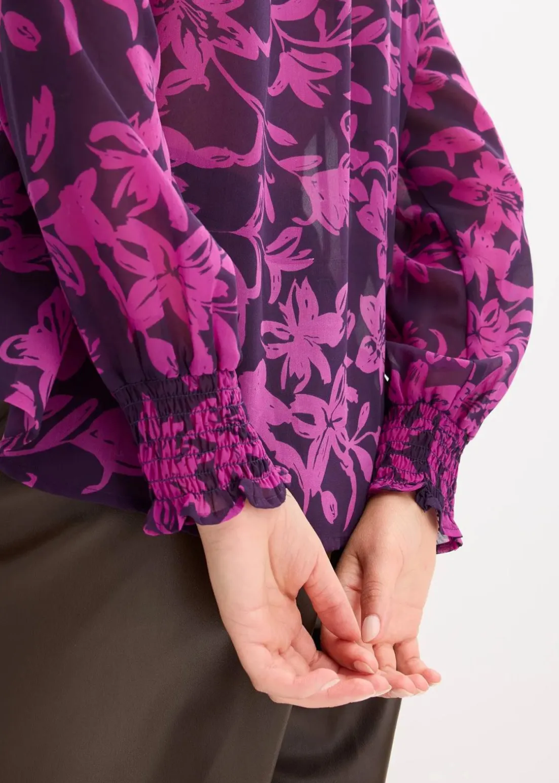 Leicht Taillierte Bluse mit kleinem Stehkragen und 3/4-Ärmeln