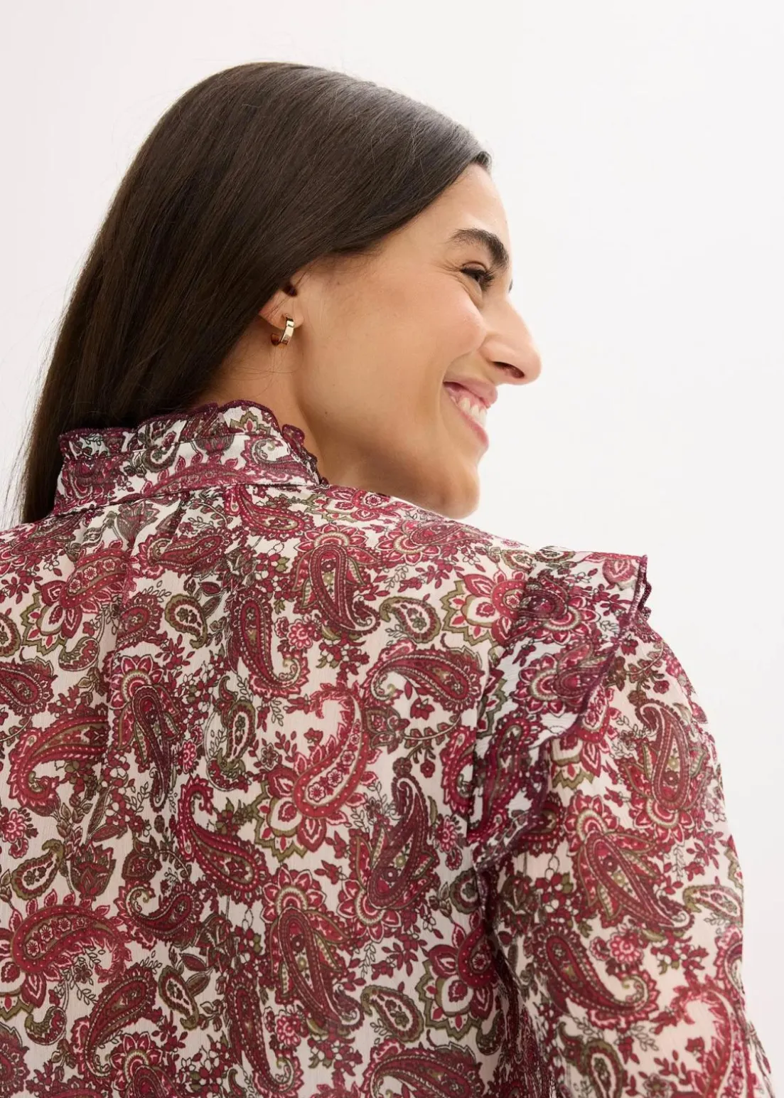 Bluse aus leicht transparentem Chiffon mit modischen Rüschen an den Schultern