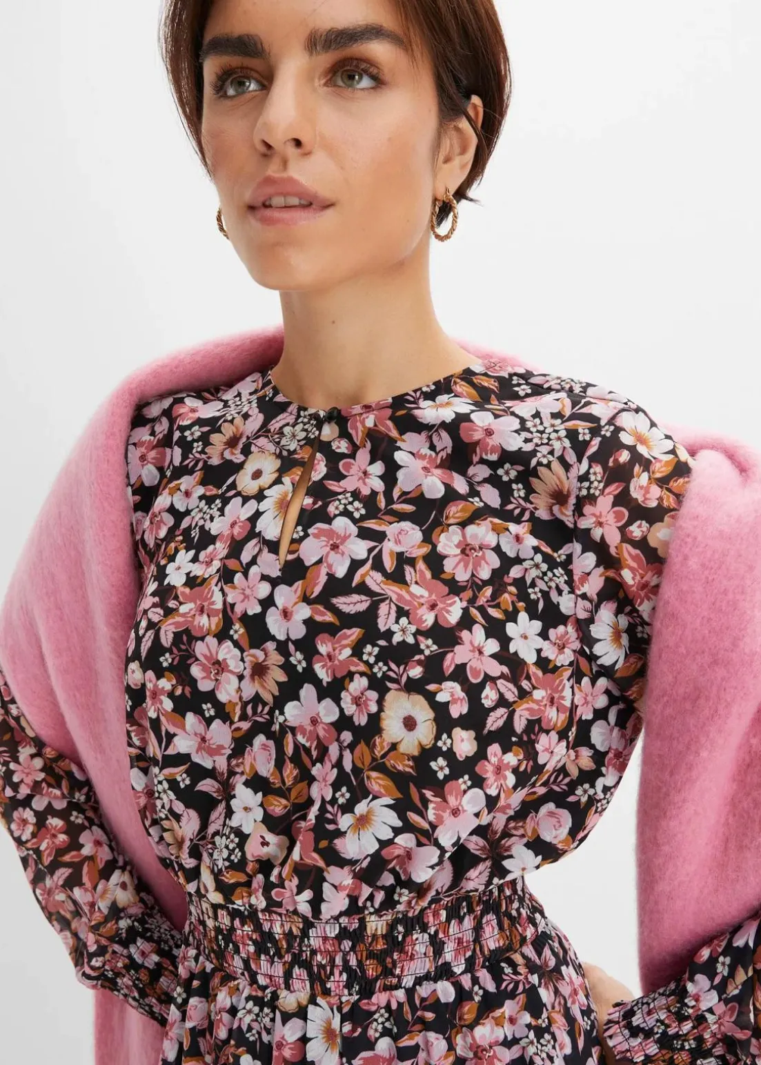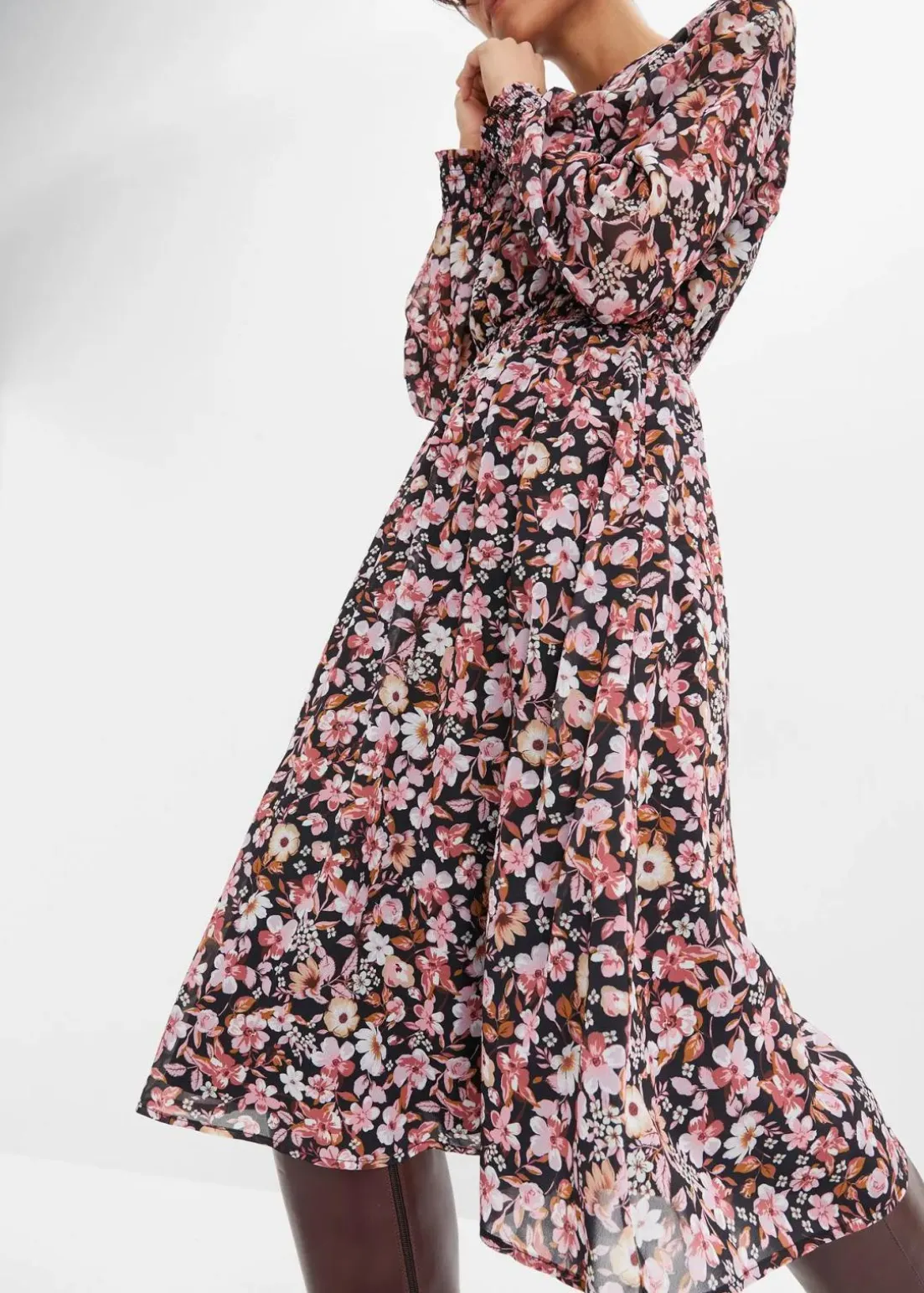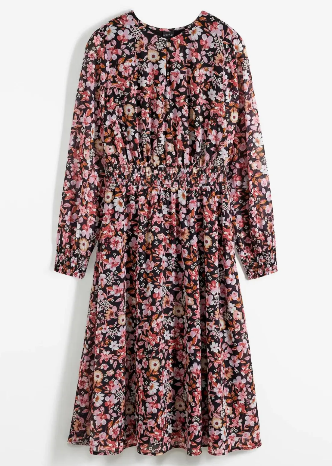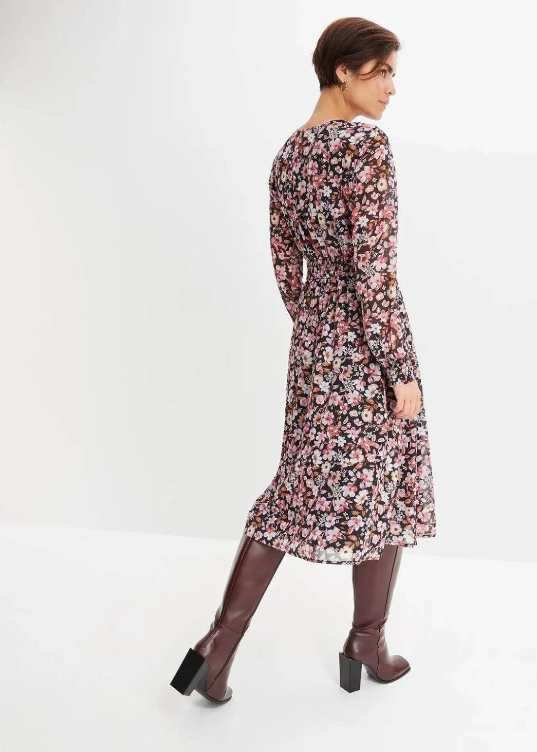 Verspieltes Chiffonkleid aus recyceltem Polyester mit schönem Blumendruck.