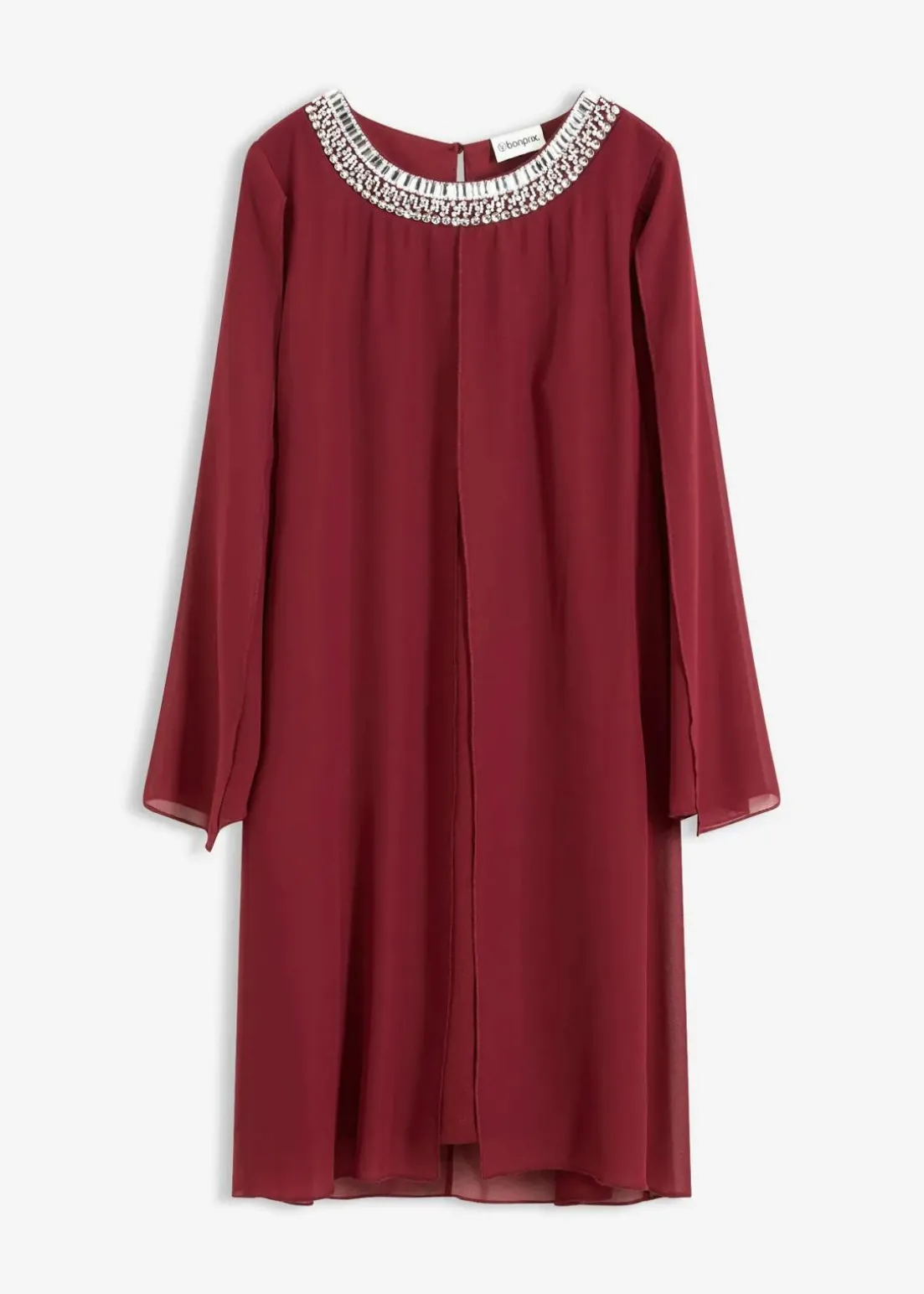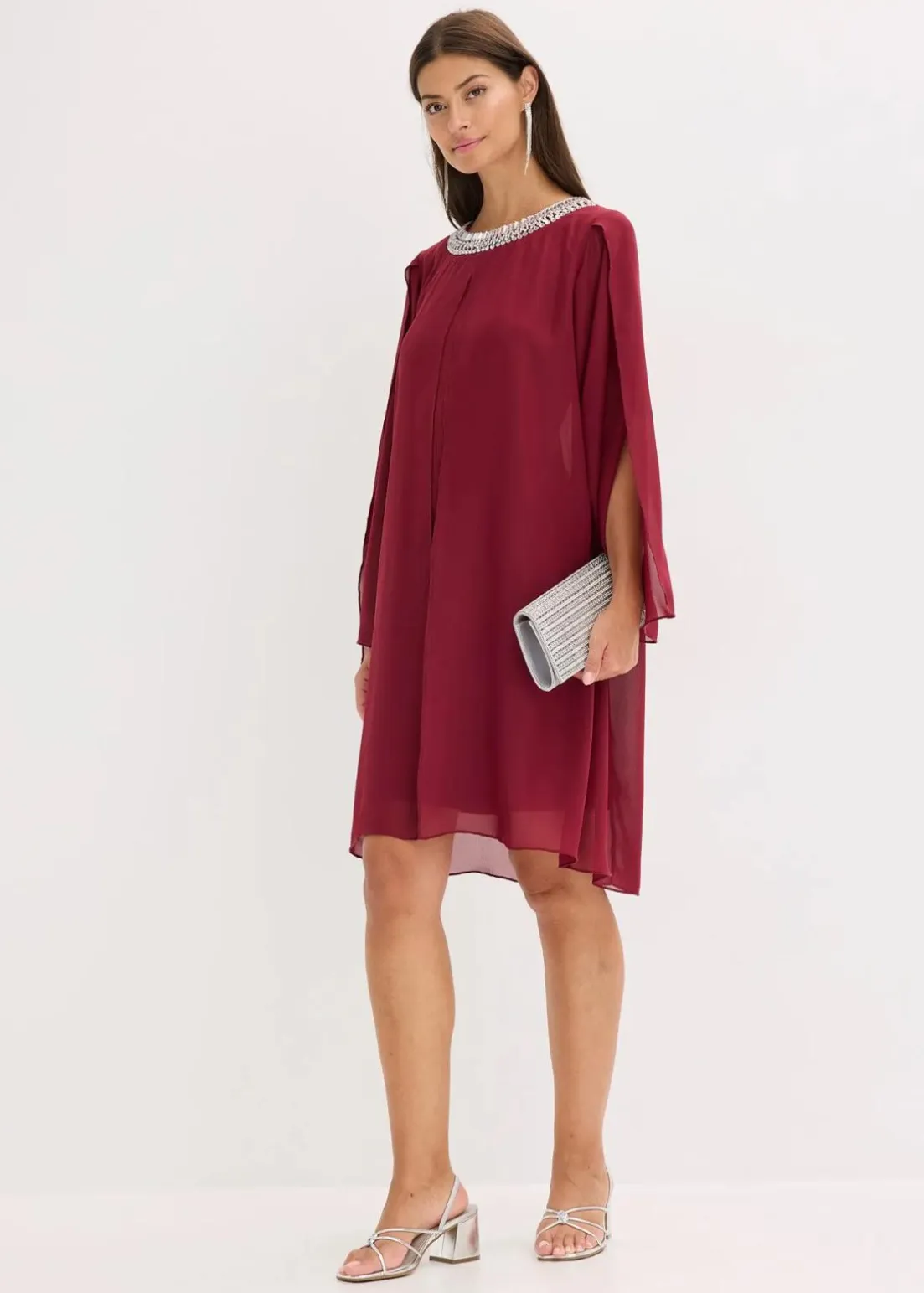 Kleid mit Strasssteinapplikation aus feinem Chiffon mit Überlappung