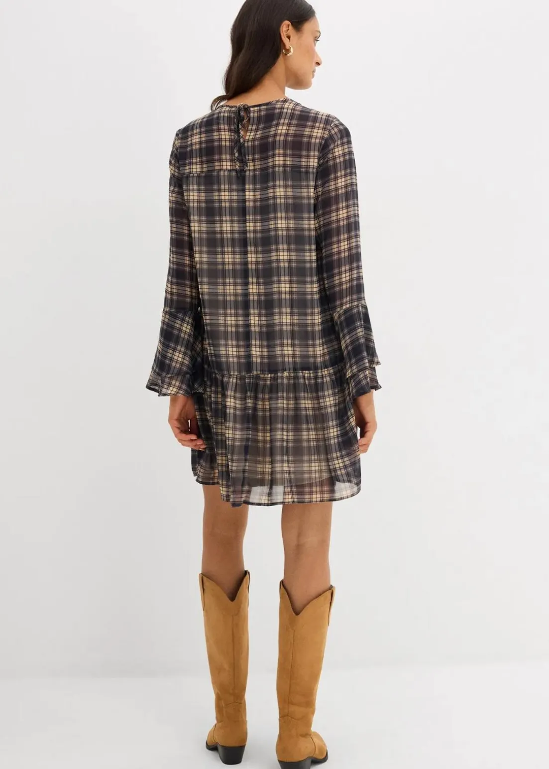 Modisches Chiffonkleid mit Volants und langen Ärmeln