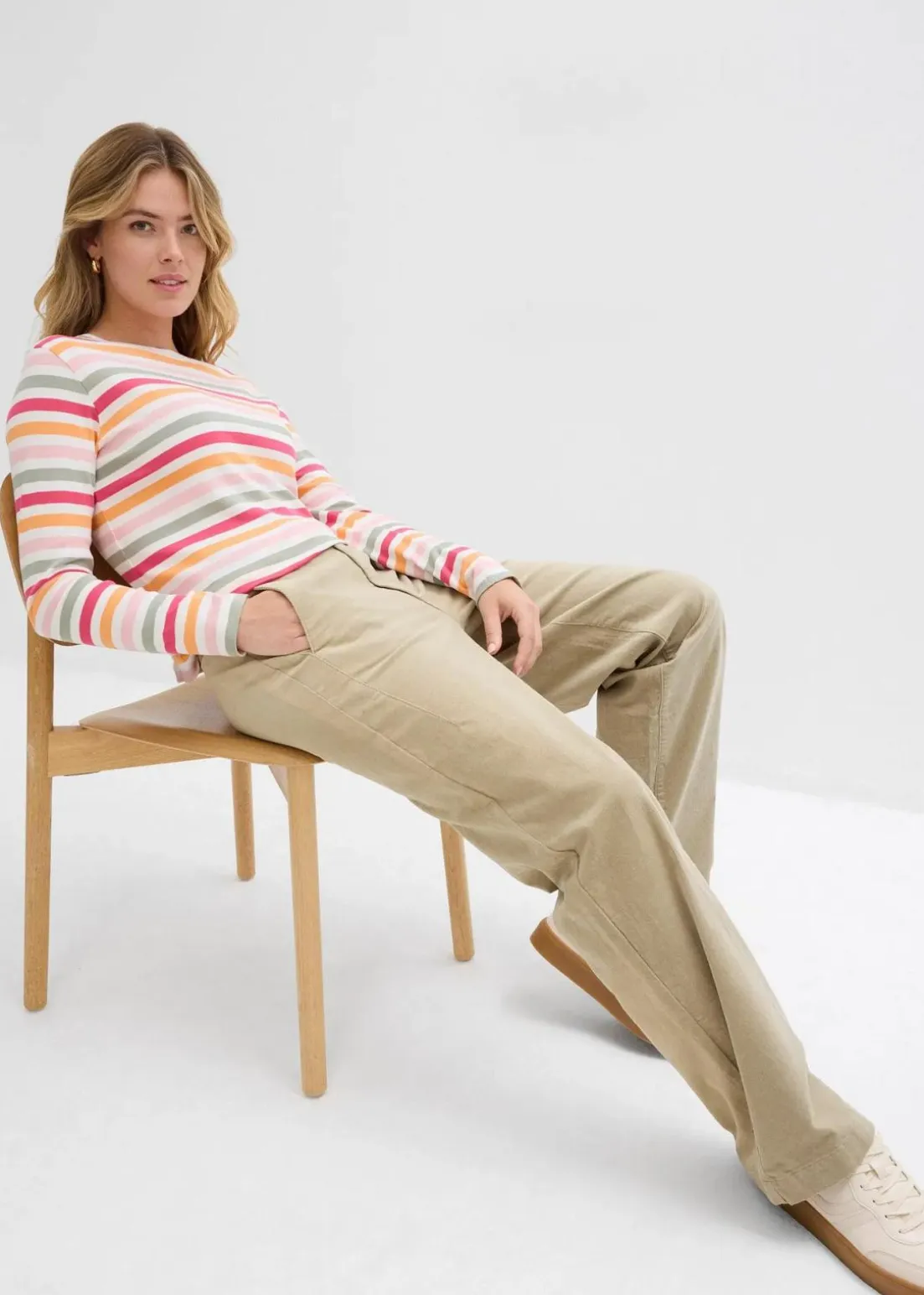 Cordhose mit hoch geschnittenem, elastischem Bund und Bindedetail. Weite Passform.