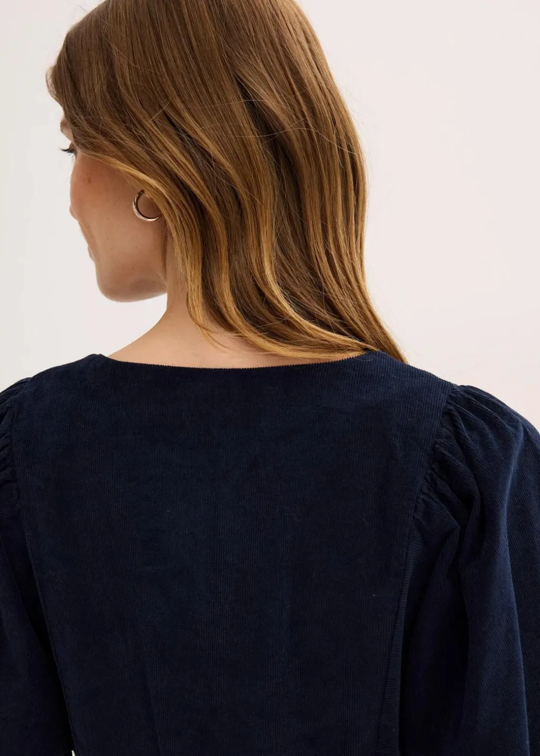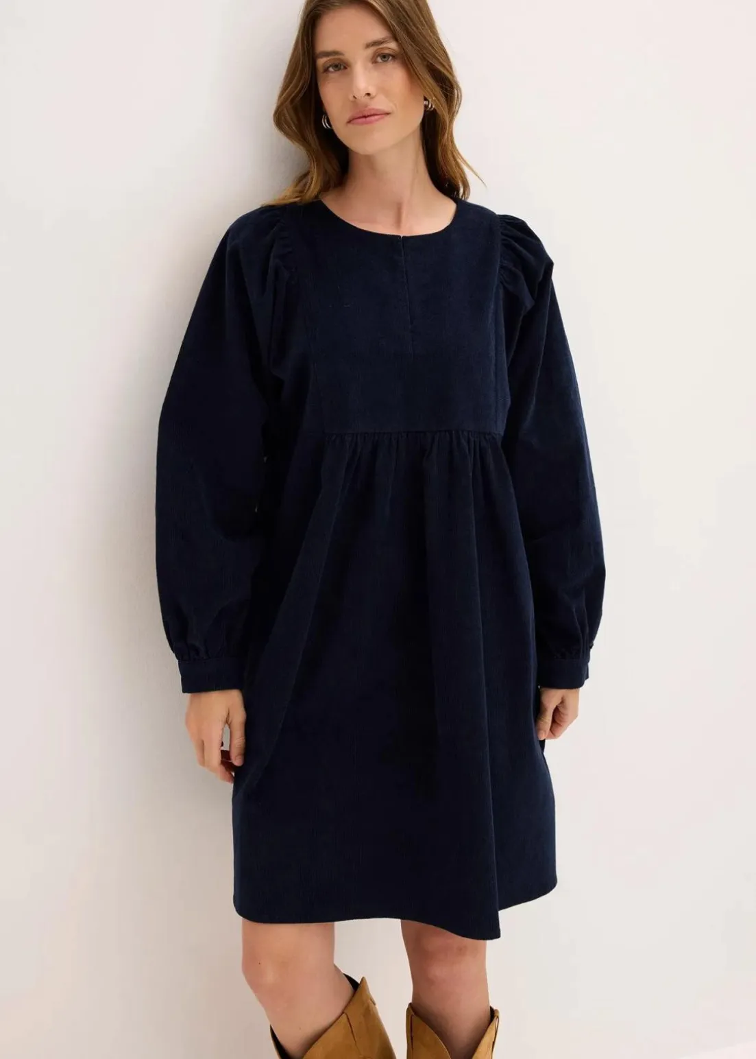 Weit fallendes Kleid aus Cord mit Volumenärmeln