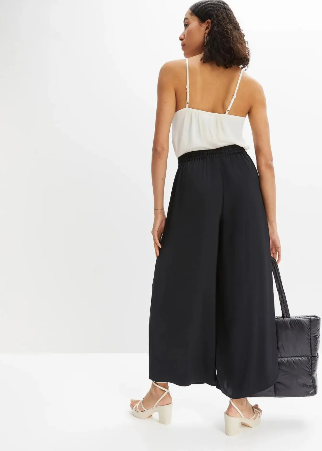 Modische Satin-Culotte mit elastischem Bund und Bindeband.