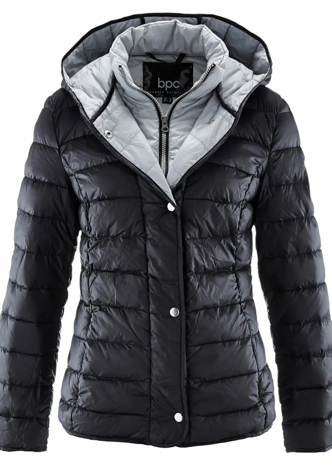 Diese wärmende Jacke der Marke bpc überzeugt mit ihrem kontrastfarbigen 2-in-1 Design. Sie zeichnet sich durch einen hohen Stehkragen und eine große Kapuze aus. Eine Druckknopfleiste verdeckt den durchgängigen Reißverschluss.Die Jacke ist mit ultra leichter Daune gefüttert und attraktiv gesteppt. Zwei Reißverschlusstaschen auf der Vorderseite geben dem Modell den letzten Schliff.