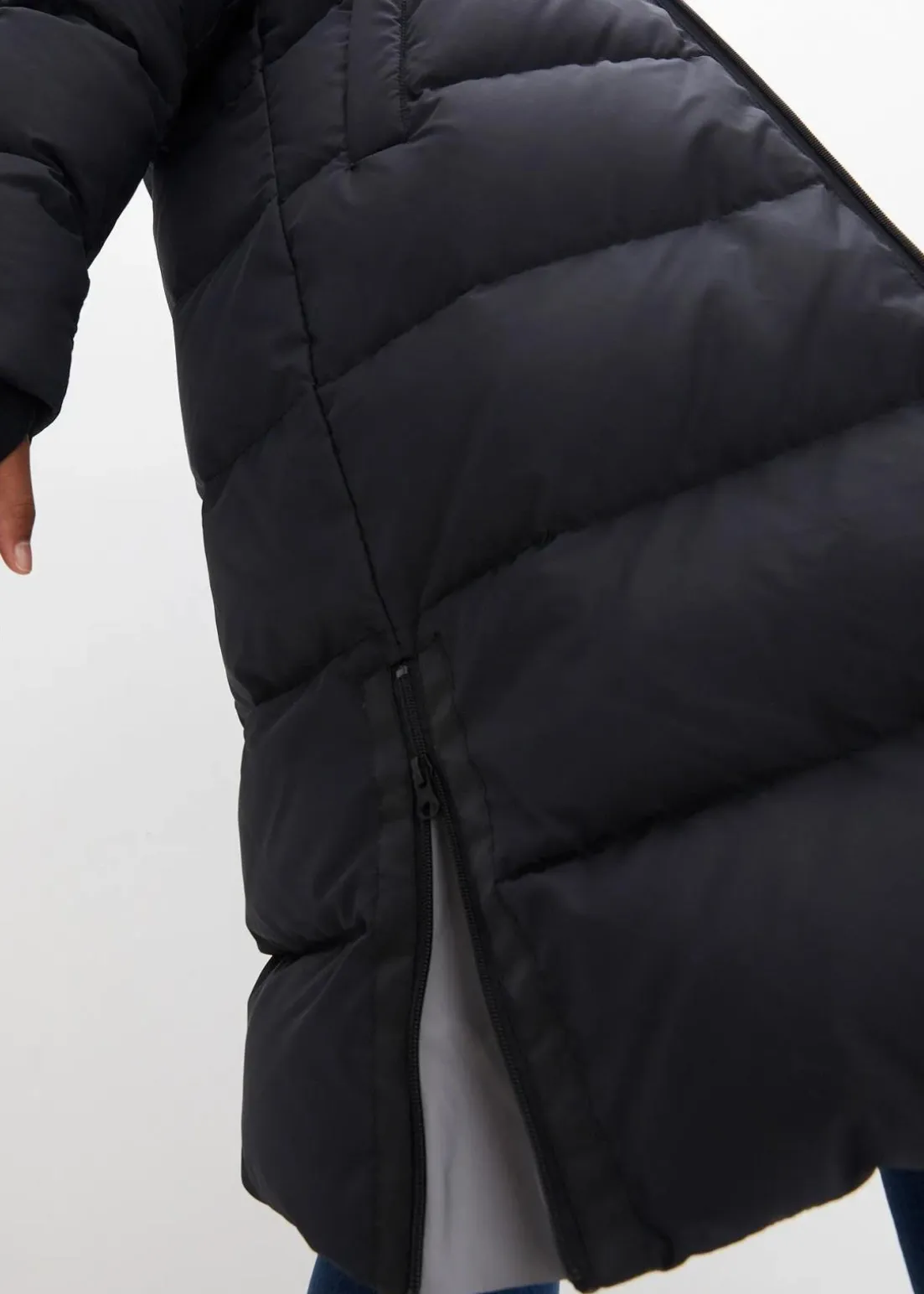 Vielseitiger Steppmantel mit Tragefunktion und seitlichen Reißverschlüssen