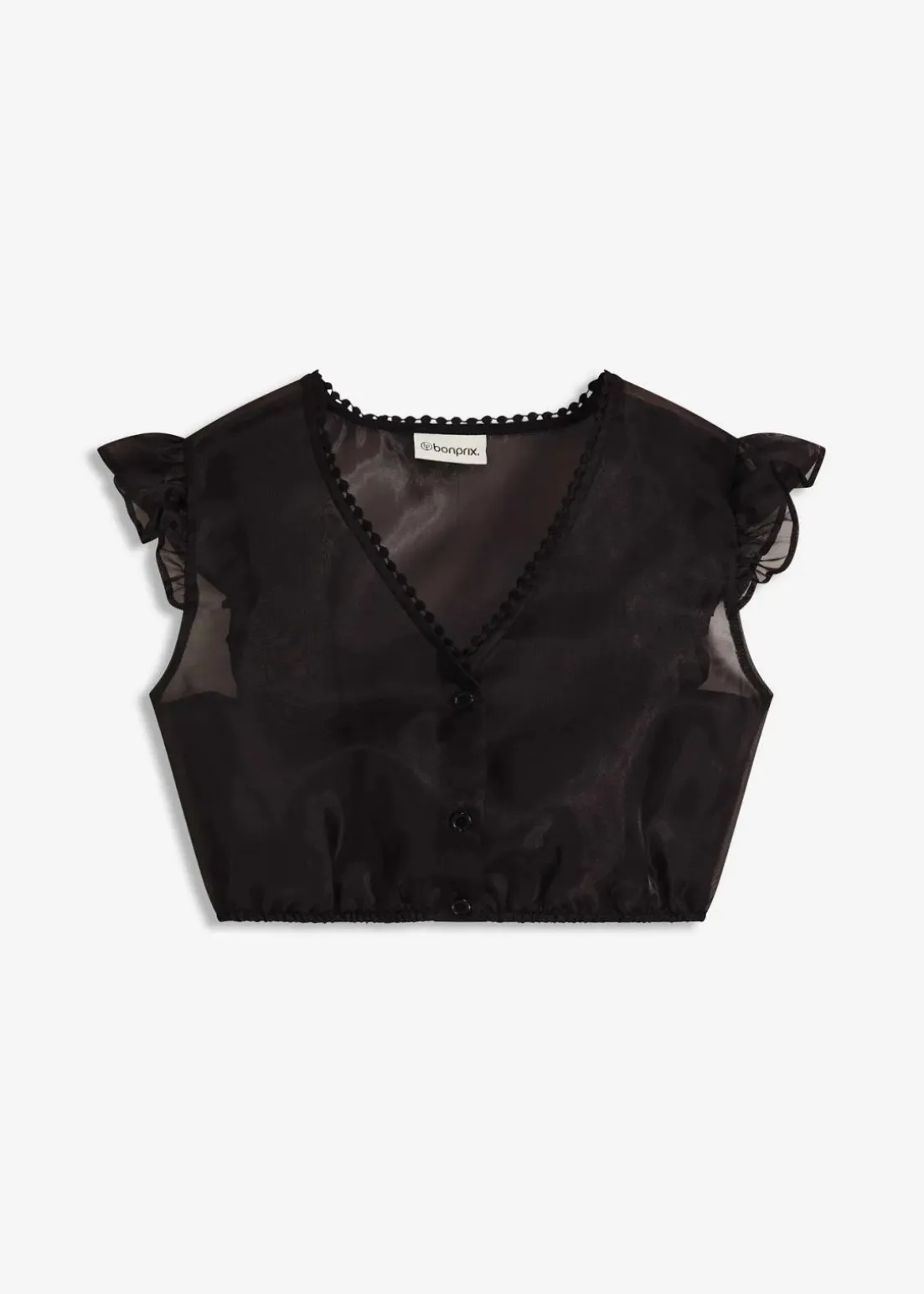 Modern und feminin: Dirndlbluse aus glänzendem Organza mit Rüschen-Ärmel