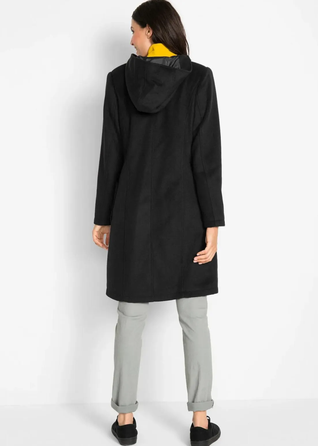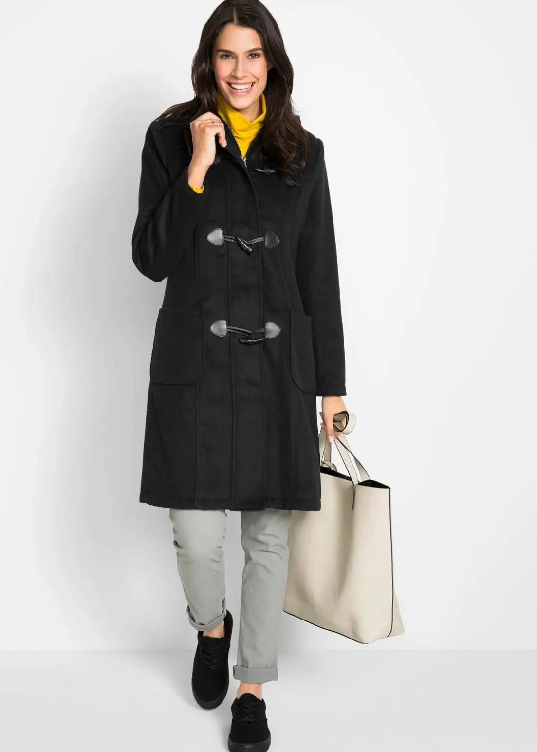 Der bequeme Dufflecoat von bpc ist perfekt für kühlere Tage. Durch das weiche Wollmaterial und die figurumspielende Passform fühlt sich frau in diesem Mantel richtig wohl. Der Reißverschluss sorgt dafür, dass die Kälte draußen bleibt.Und schick sieht dieser Woll-Mantel mit Kapuze auch aus. Die typischen Knebelknöpfe und geräumigen Fronttaschen geben diesem ansonsten schlichten Mantel das gewisse Etwas.