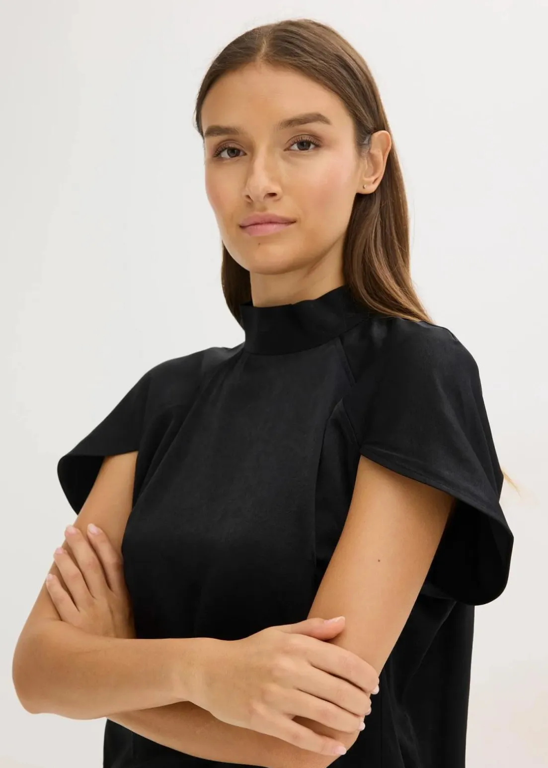 Elegante Kurzarmbluse aus glänzenden Satin