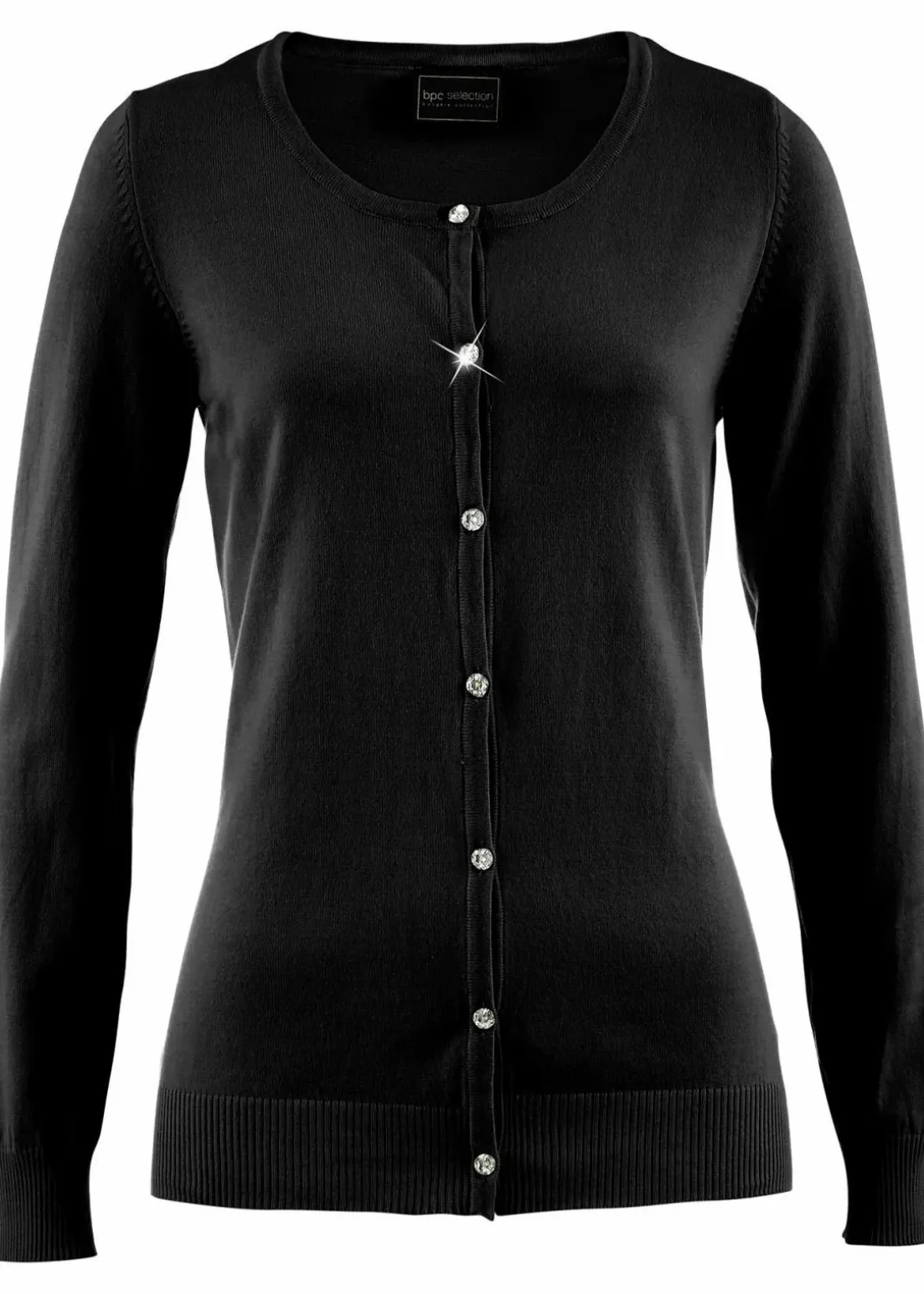 figurbetont, mit dekorativen Knöpfen in Strass-Optik, Rundhals-Ausschnitt, Länge von ca. 64 cm (Gr. 36/38) bis ca. 74 cm (Gr. 56/58), maschinenwaschbar,
