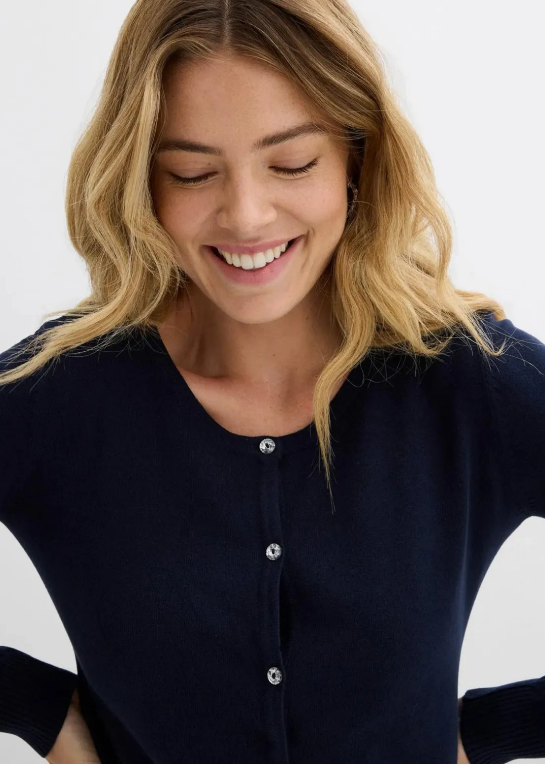 Geschmackvolle Strickjacke mit Rundhalsausschnitt