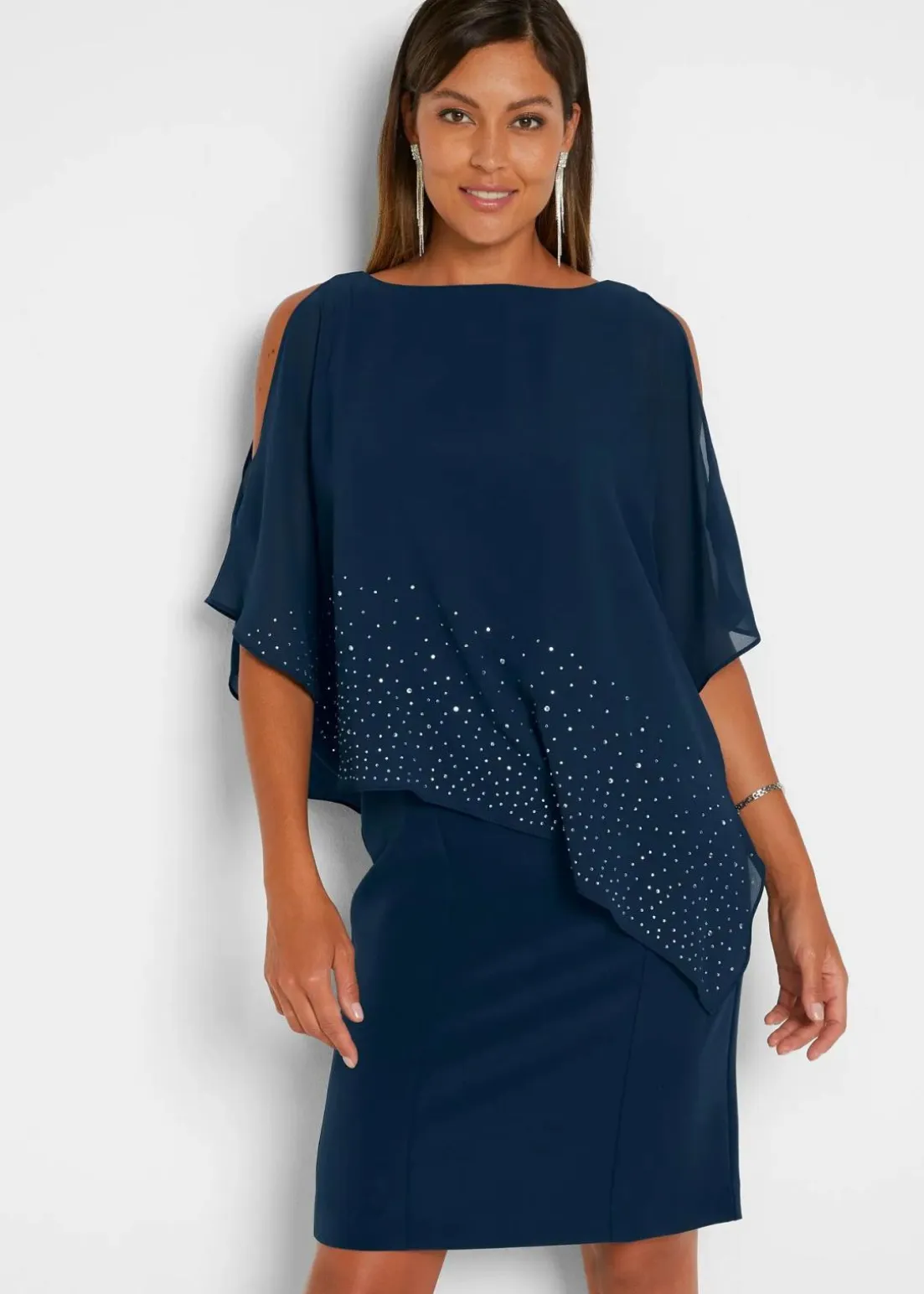 Apartes Lagen-Kleid mit opulenter Glitzersteinapplikation