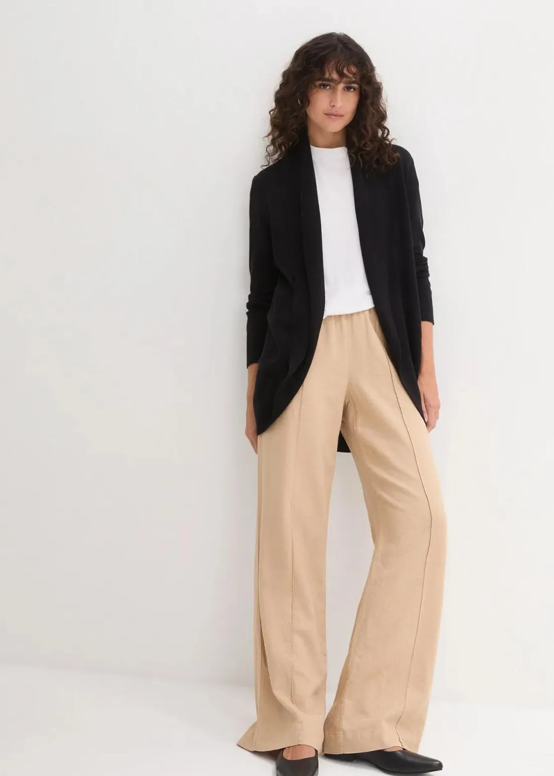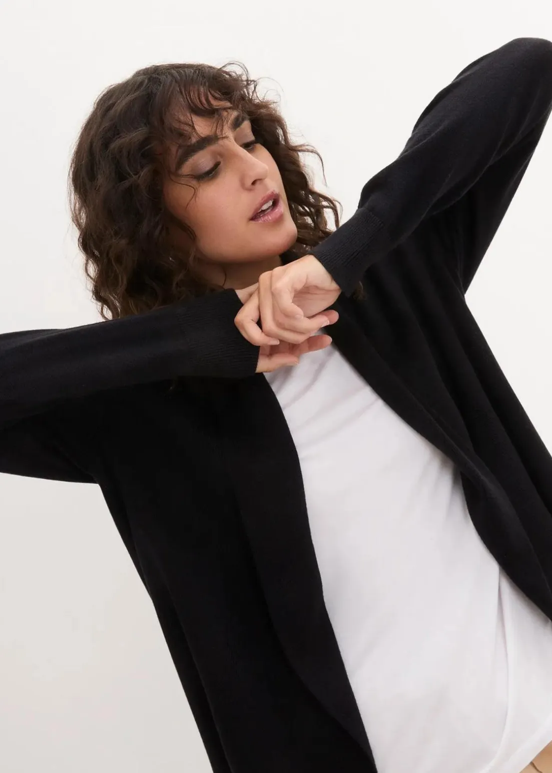 Diese legere Strickjacke aus der aktuellen Kollektion von bpc überzeugt durch hohen Tragekomfort und einen ausgefallenen Schnitt: Die bequeme Jacke hat lange Ärmel mit feinen Ripp-Bündchen und einen abgerundeten Saum.Sie wird offen getragen und lässt sich am besten zu figurbetonten T-Shirts, Tops und engen Hosen kombinieren.
