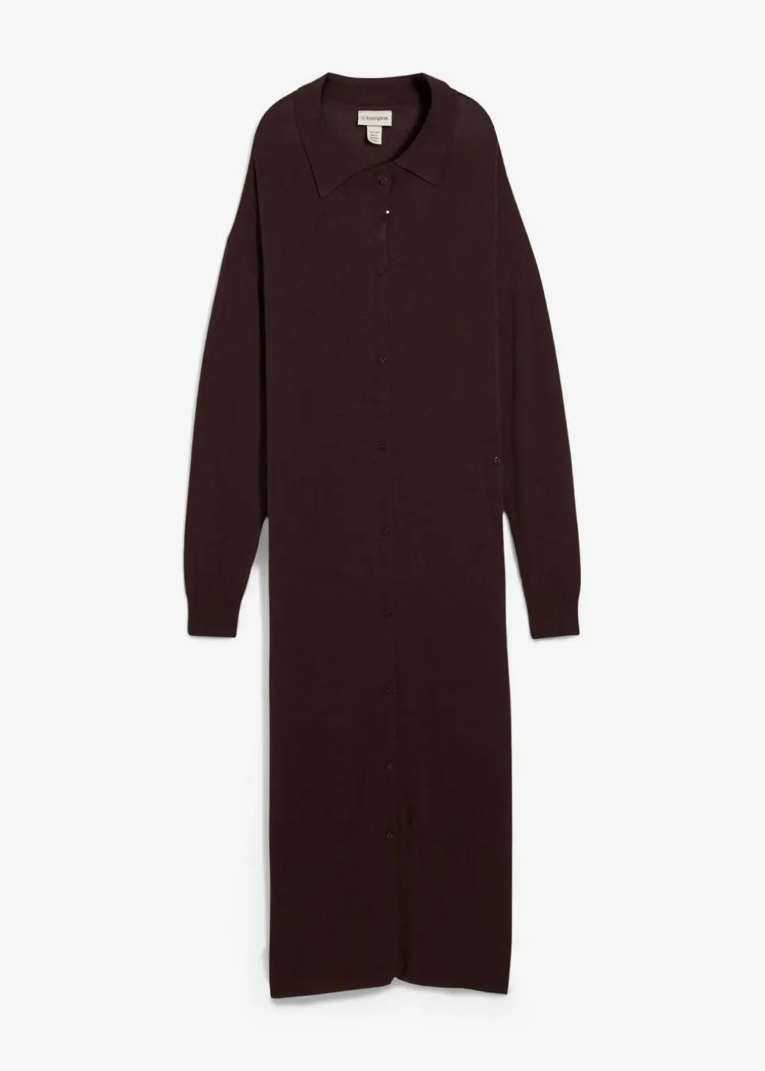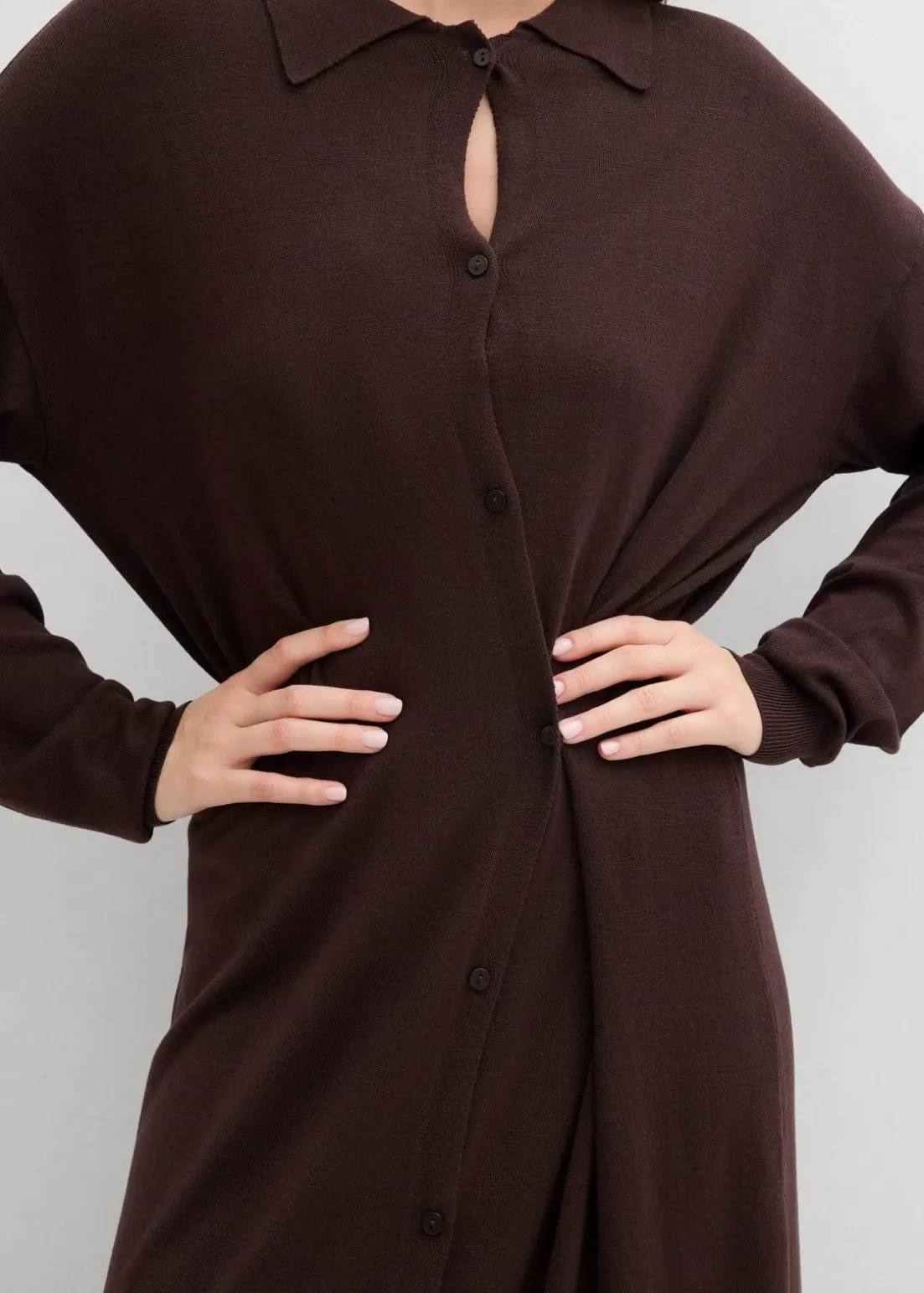 Feinstrickkleid mit einem offenen Kragen, langen Ärmeln und einer Knopfleiste vorne