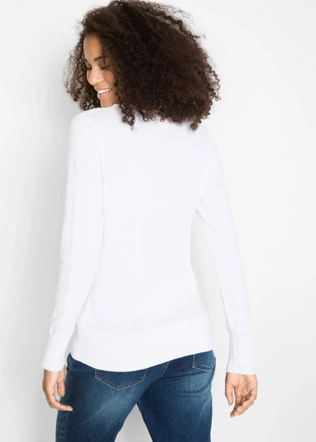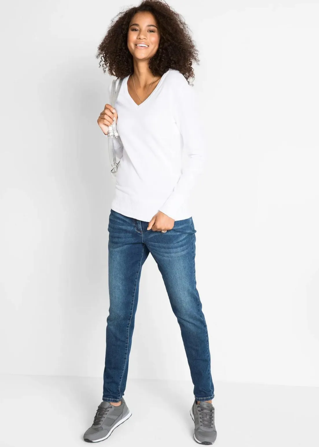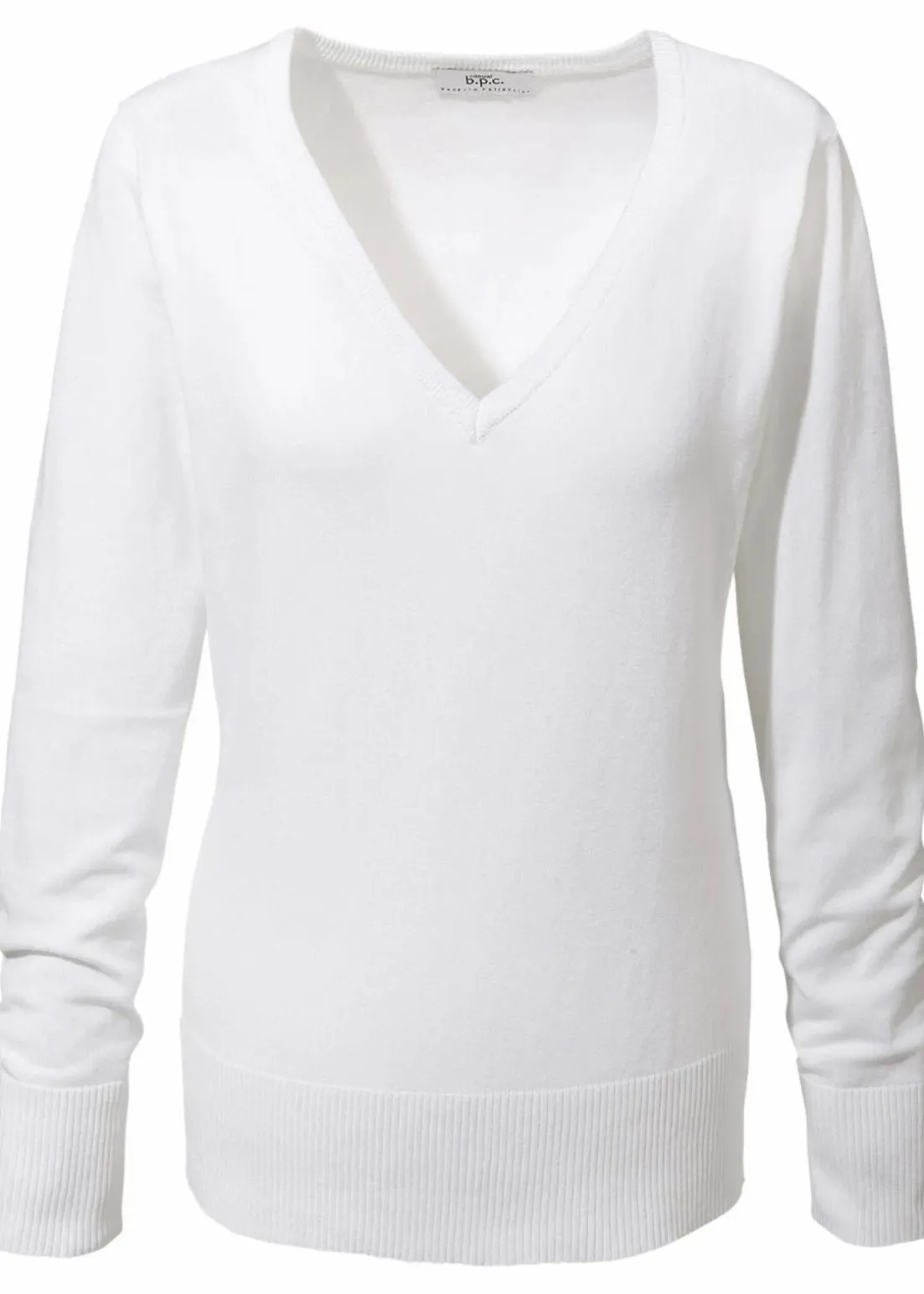 Das bequeme Feinstrick-Material und der klassisch figurbetonte Schnitt machen diesen V-Pullover zum tollen Begleiter für die Freizeit. Der tiefe Ausschnitt sorgt für einen legeren und natürlichen Look.Das Bündchen und die Ärmelsäume sind schön breit und wirken unaufdringlich und lässig. In Kombination mit sportlichen Cargo-Hosen oder ausgestellten Röcken sieht dieser V-Pullover von bpc einfach am besten aus.