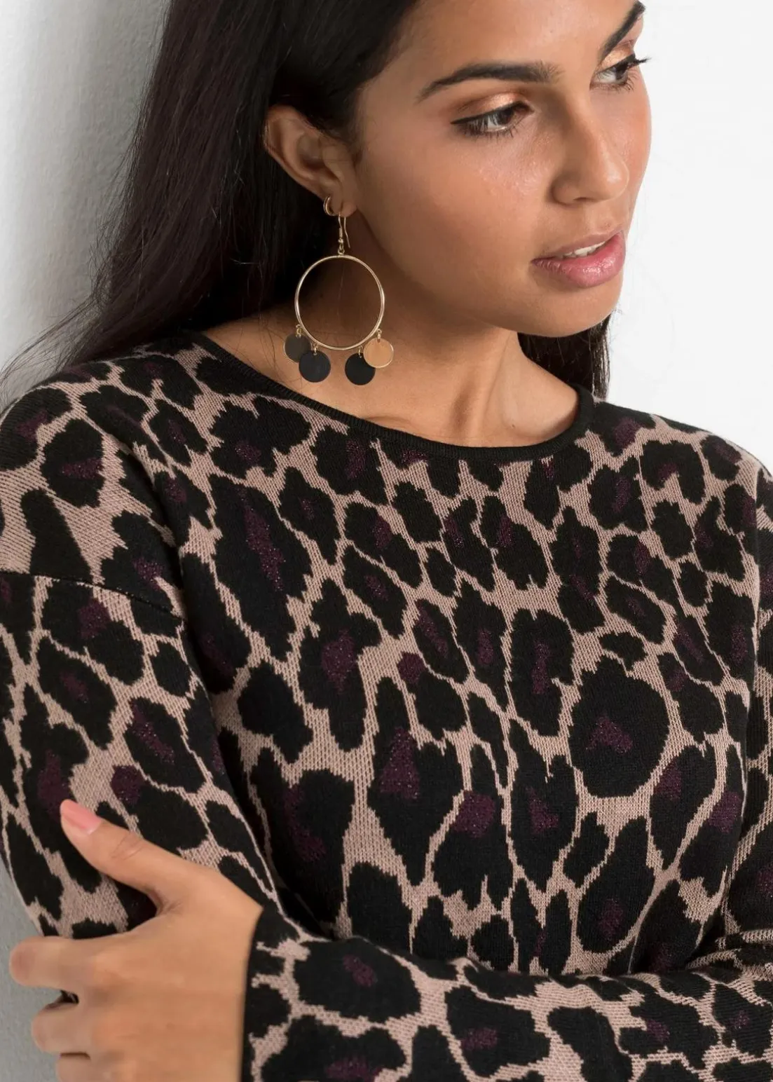 Kuschelig gemusterter Pullover mit seitlichen Schlitzen am Saum. Länge in Gr. 36/38 ca. 64 cm.