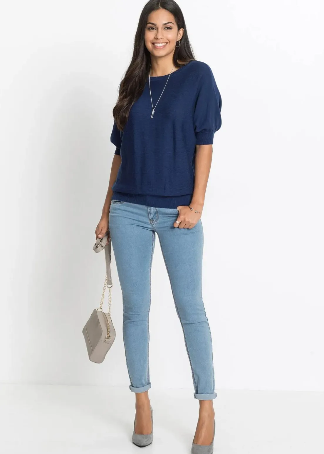 Rundhals-Pullover mit kurzen Fledermausärmeln