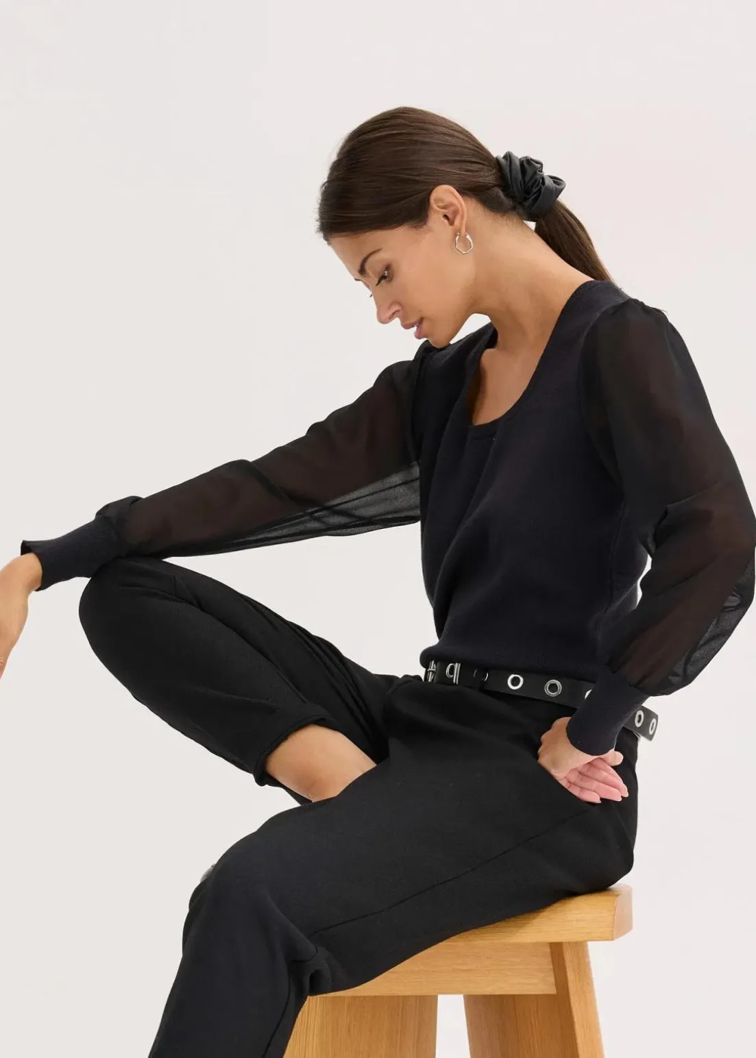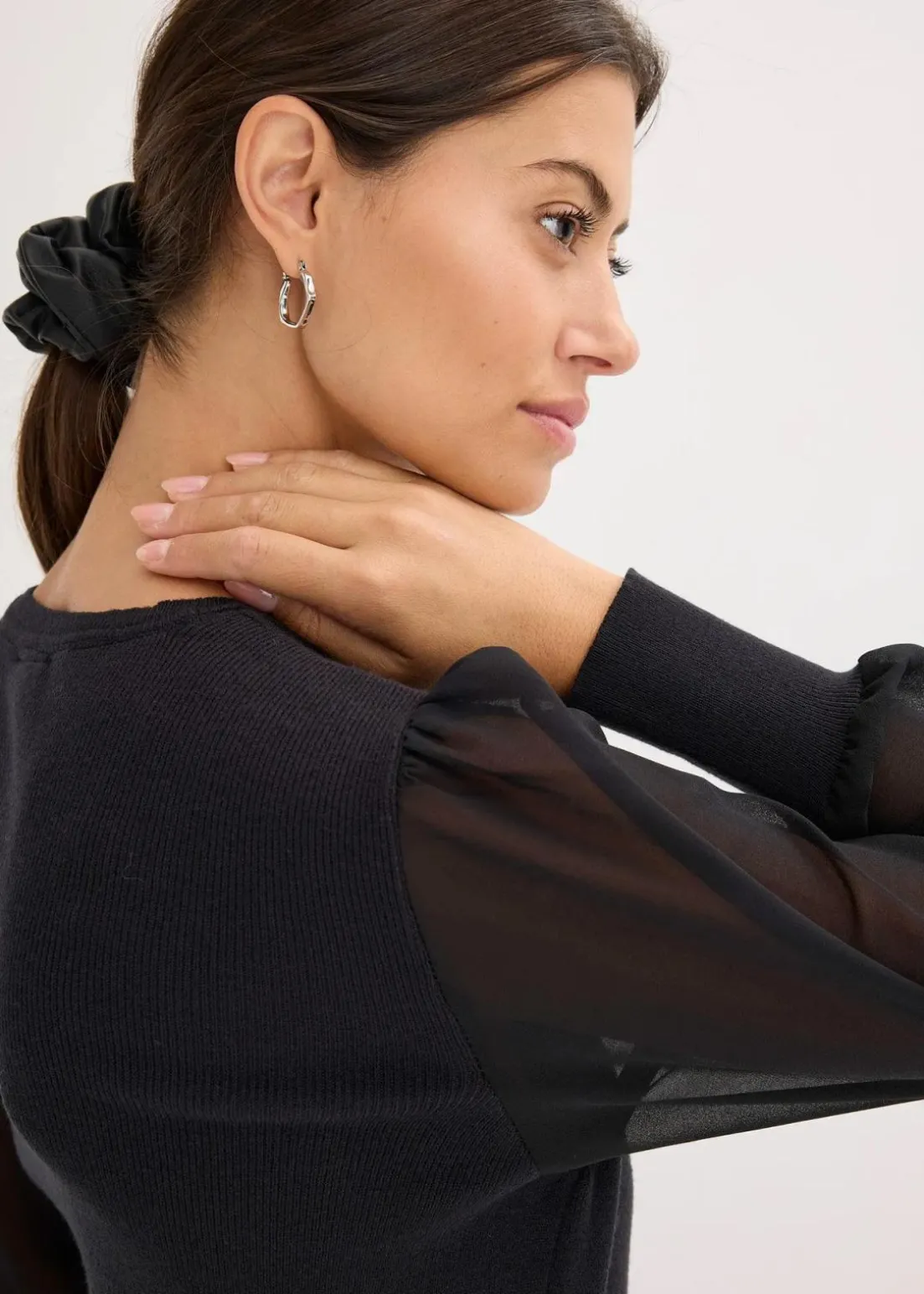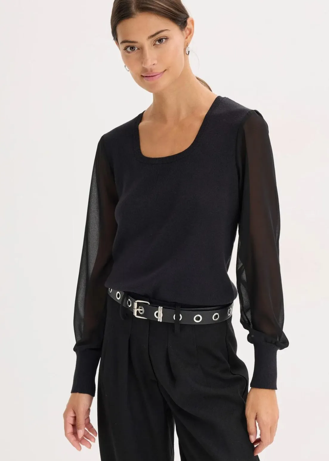 modischer Pullover mit Chiffonärmeln