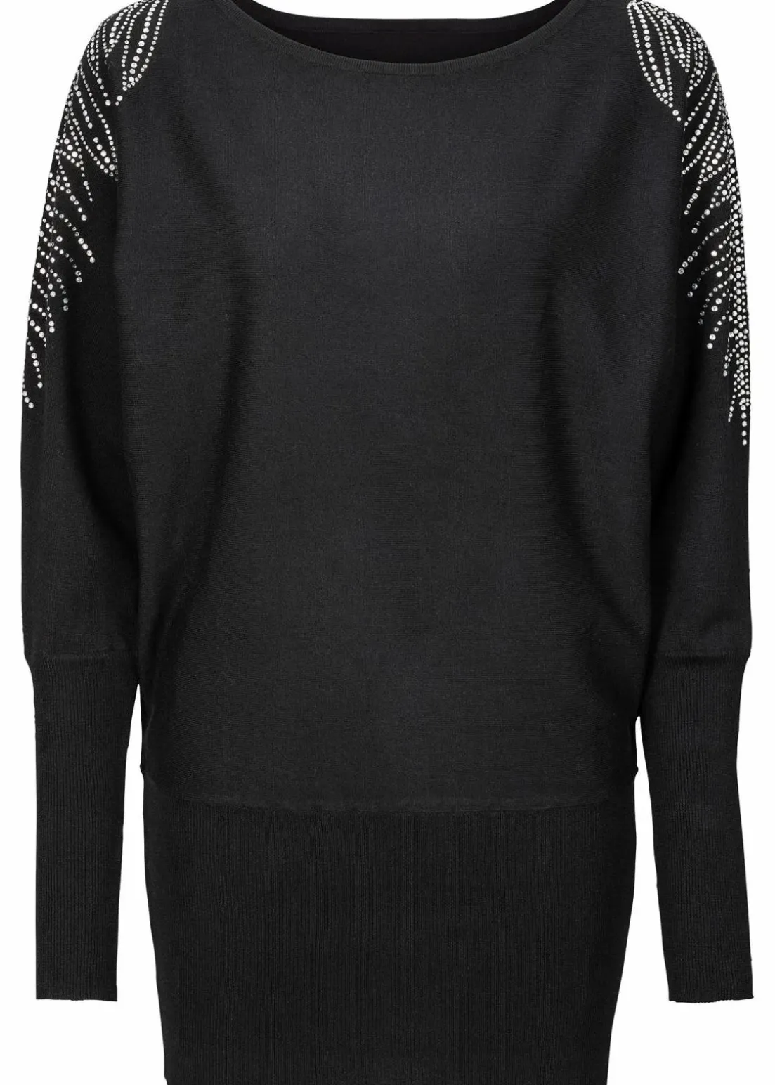 Die lockere Passform geht mit den breiten Bündchen am Ärmelende sowie am Saum einen effektstarken Mix ein. Das Modell mit einem großzügigen Rundhalsausschnitt und Fledermausärmeln erhält mit einem glitzernden Schmucksteinbesatz an den Schultern und im oberen Ärmelbereich eine funkelnde Note.Der Pullover von BODYFLIRT lässt sich mit Leggings oder Skinny-Hosen mit eingewebten Glitzerfäden oder anderen Glanzeffekten effektvoll kombinieren.