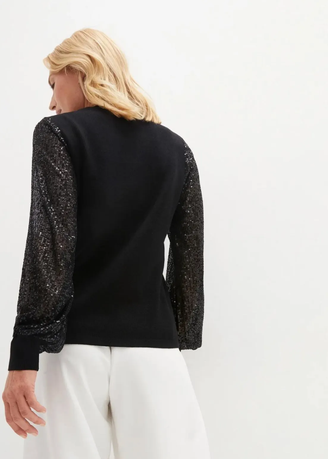 Extravaganter Pullover mit Ballon- Paillettenärmeln