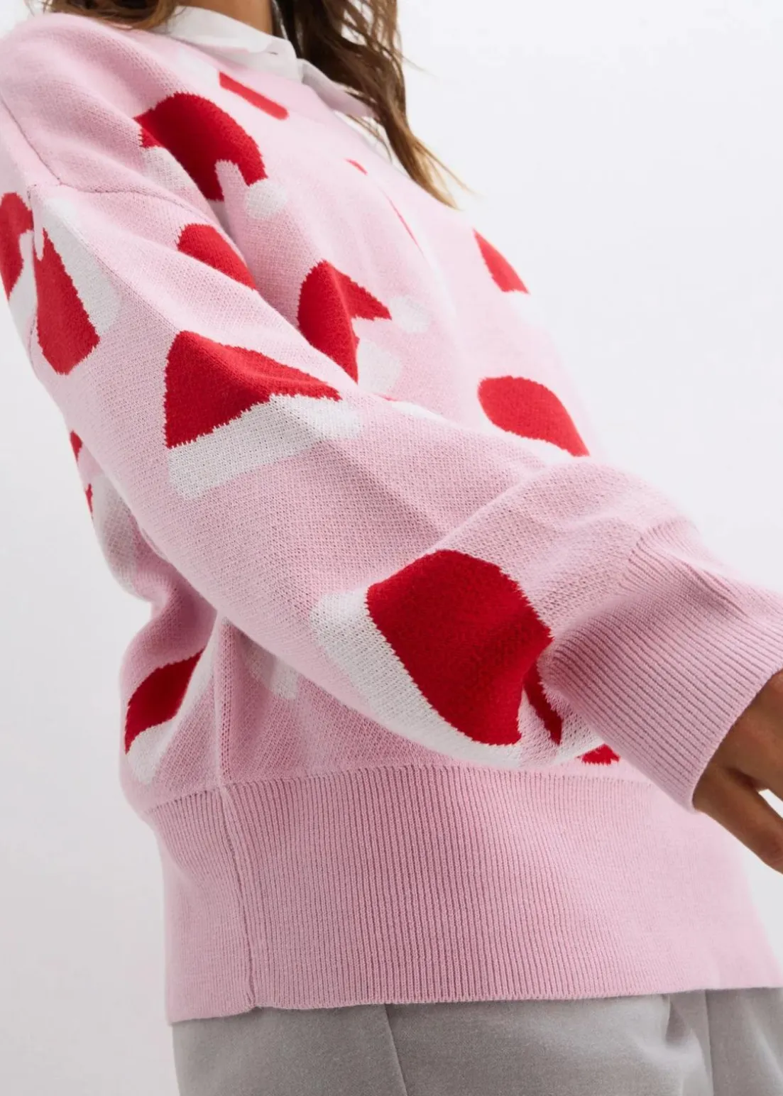 Weit geschnittener Rundhalspullover mit weihnachtlichem Motiv