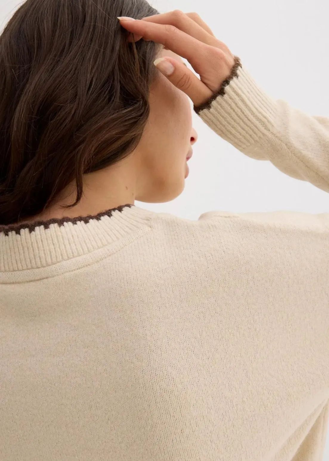Lässiger Feinstrickpullover mit überschnittener Schulter und stylischem Motiv