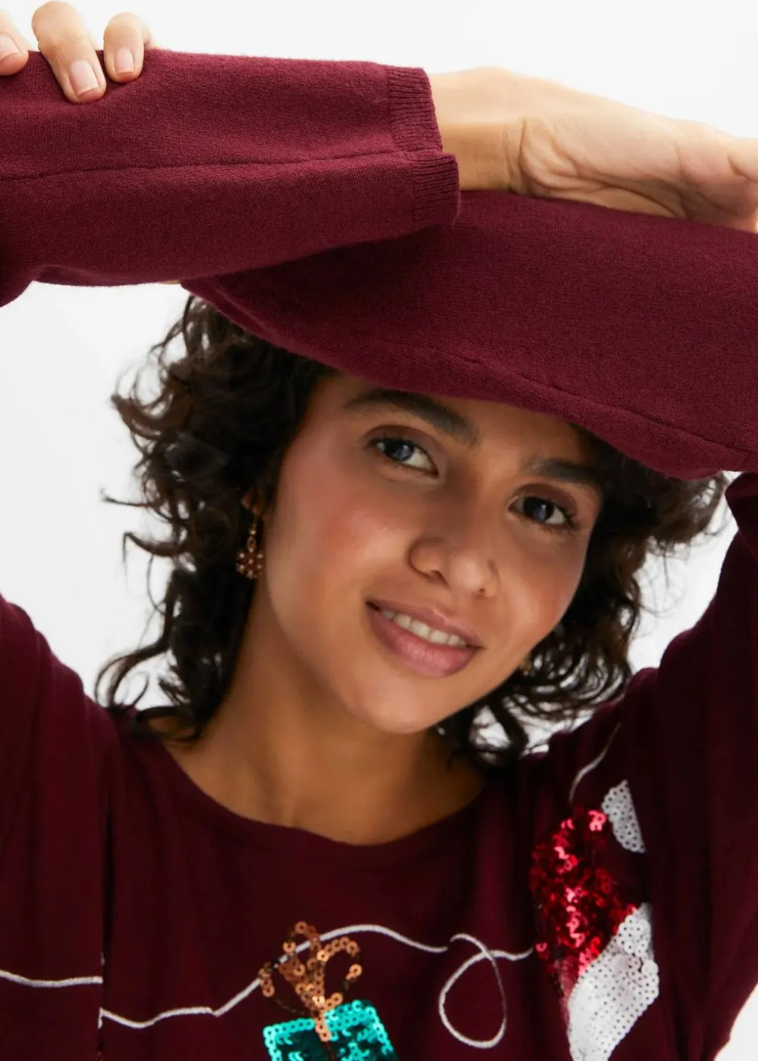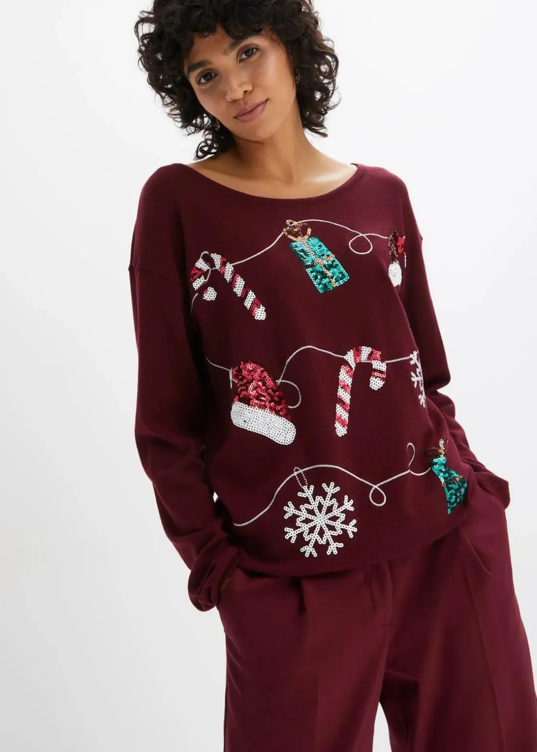 Kuscheliger Pullover mit Weihnachtsmotiv und Pailletten