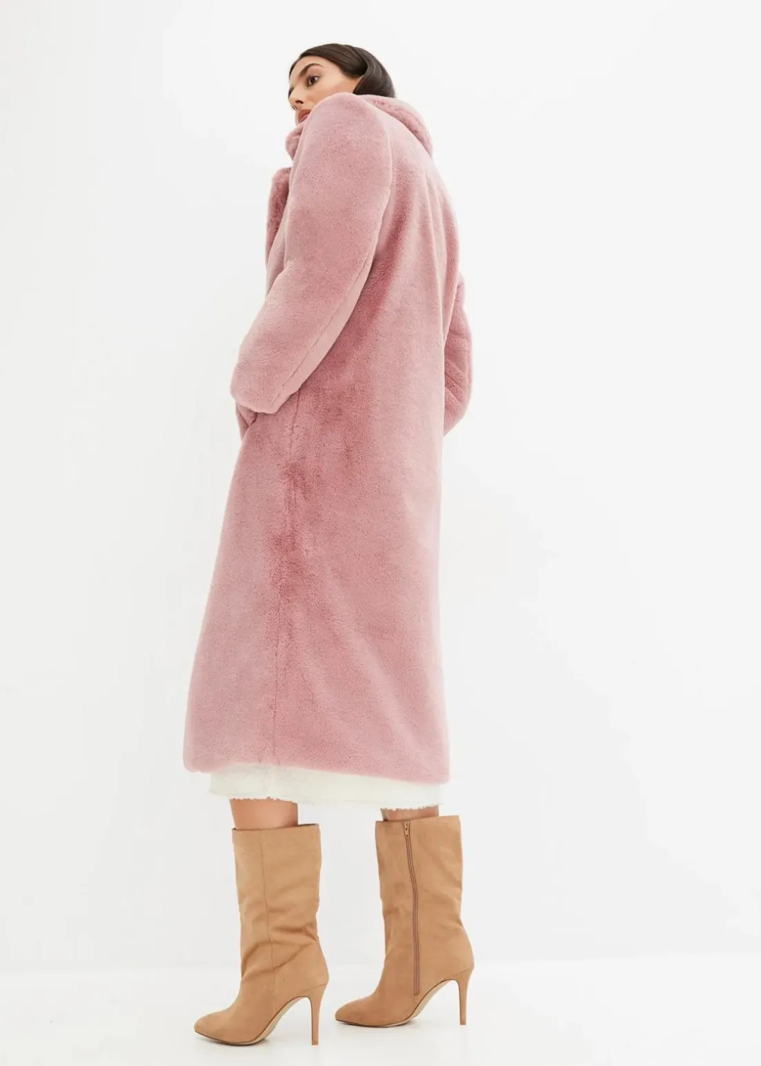 modischer Fellimitatmantel mit Druckknopf-Verschluss vorne