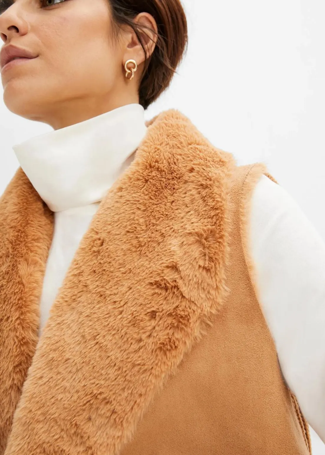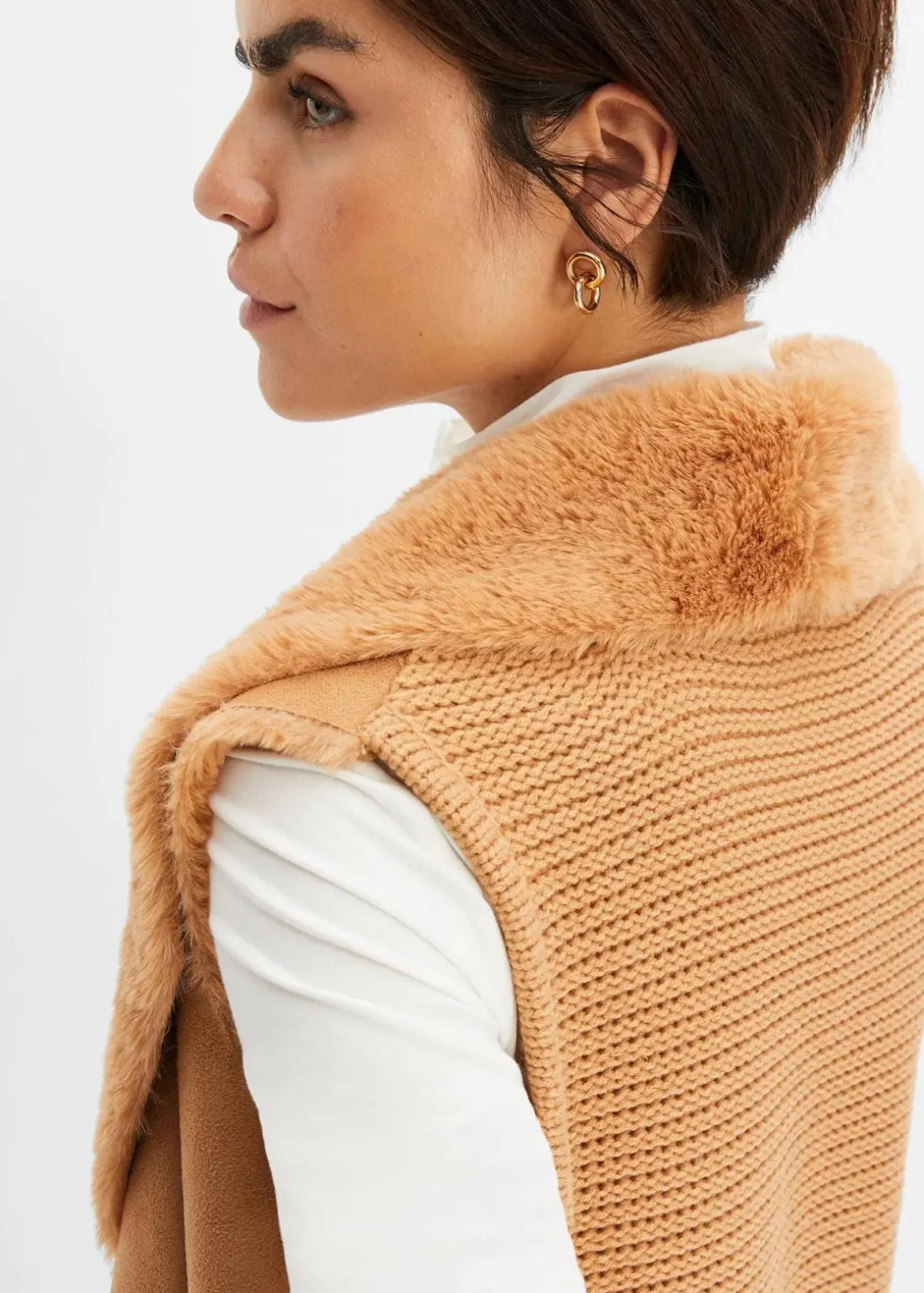 Feminine Lederimitat-Weste mit Strickeinsatz