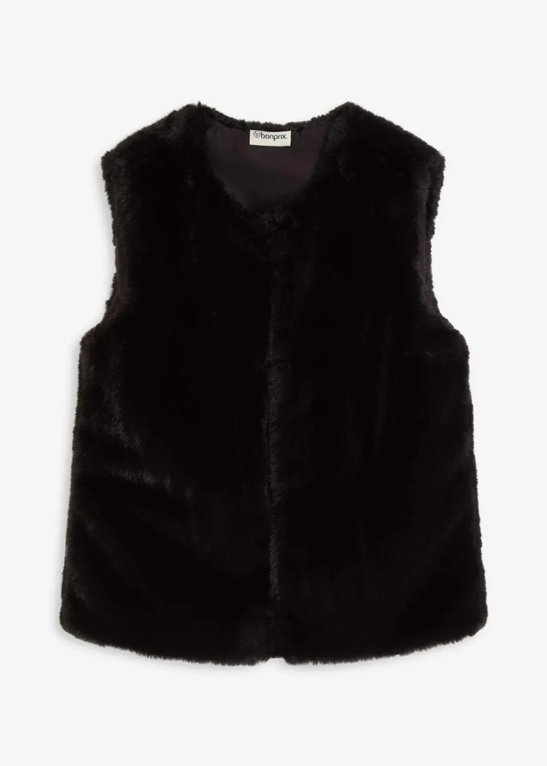 modische Fellimitat-Weste mit Haken- und Ösen-Verschluss vorne