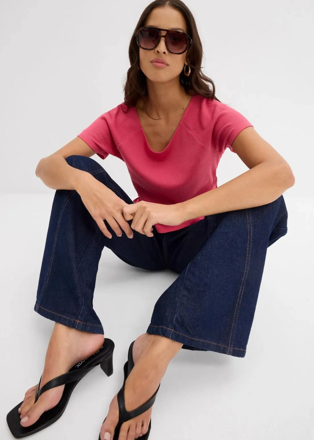 Figurbetontes T-Shirt mit Schnürung aus reiner Bio-Baumwolle
