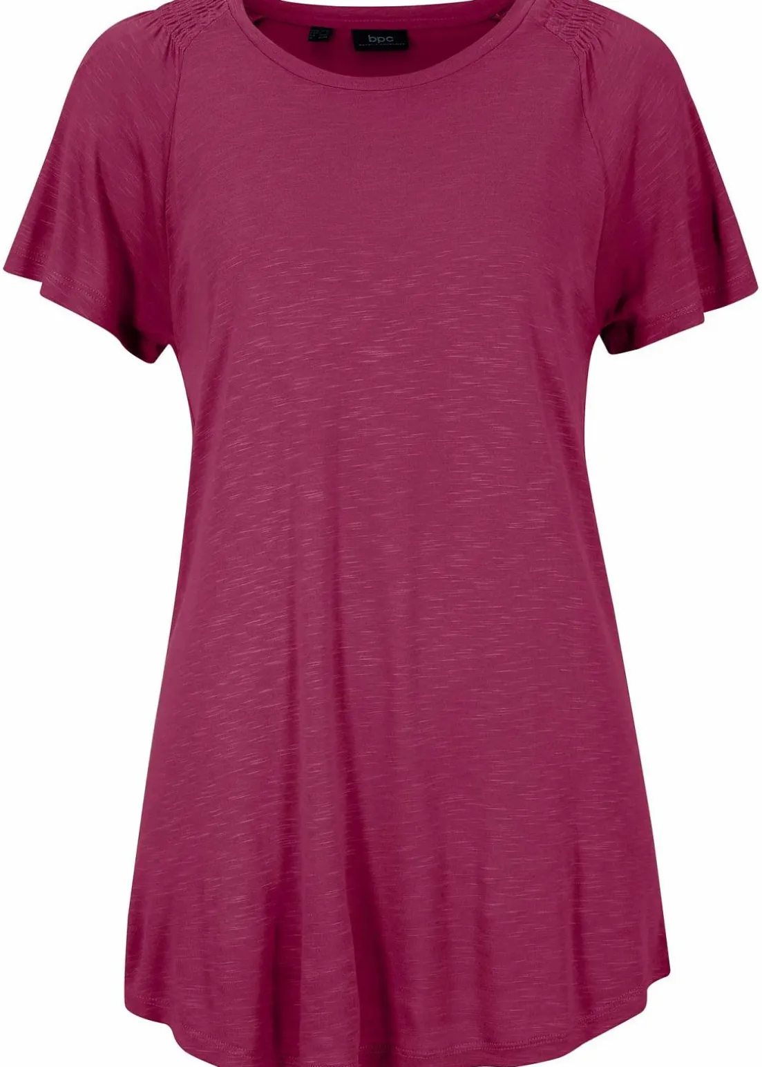 Bequemes Flammgarn-Shirt mit Flügelärmeln und schmuckvollen Raffungdetails