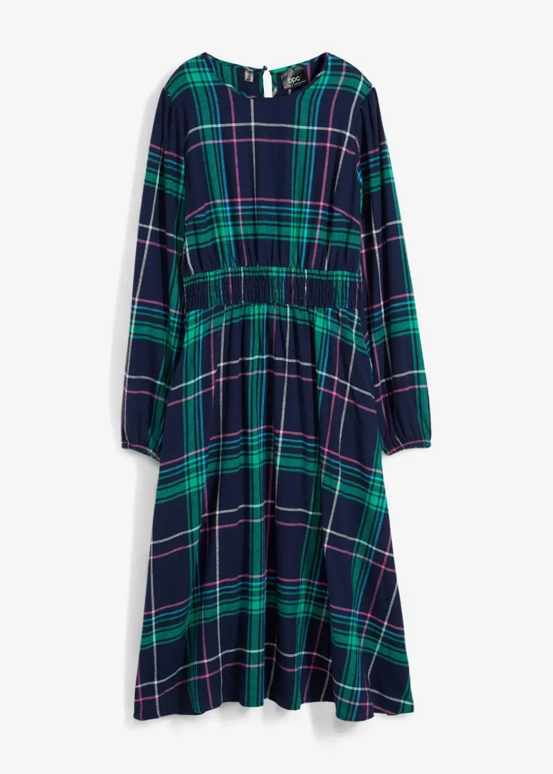 Modisch gesmocktes Flanellkleid mit seitlichen Taschen