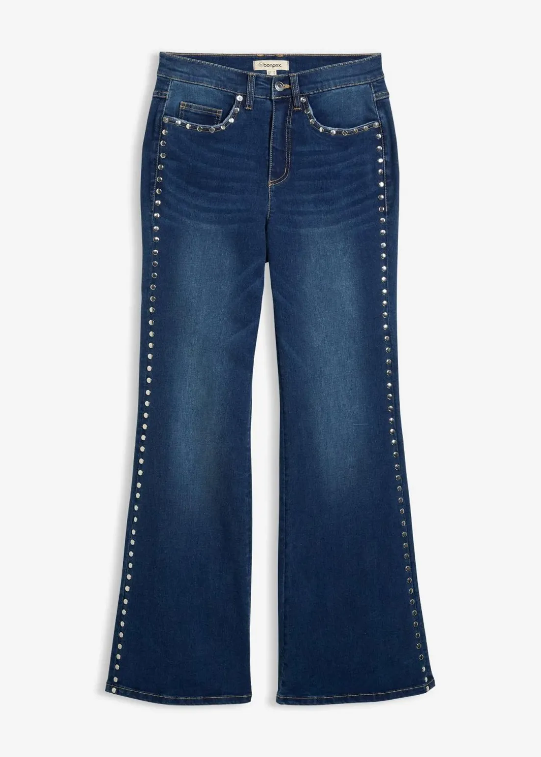 Flared-Jeans High Waist mit Nietenbesatz