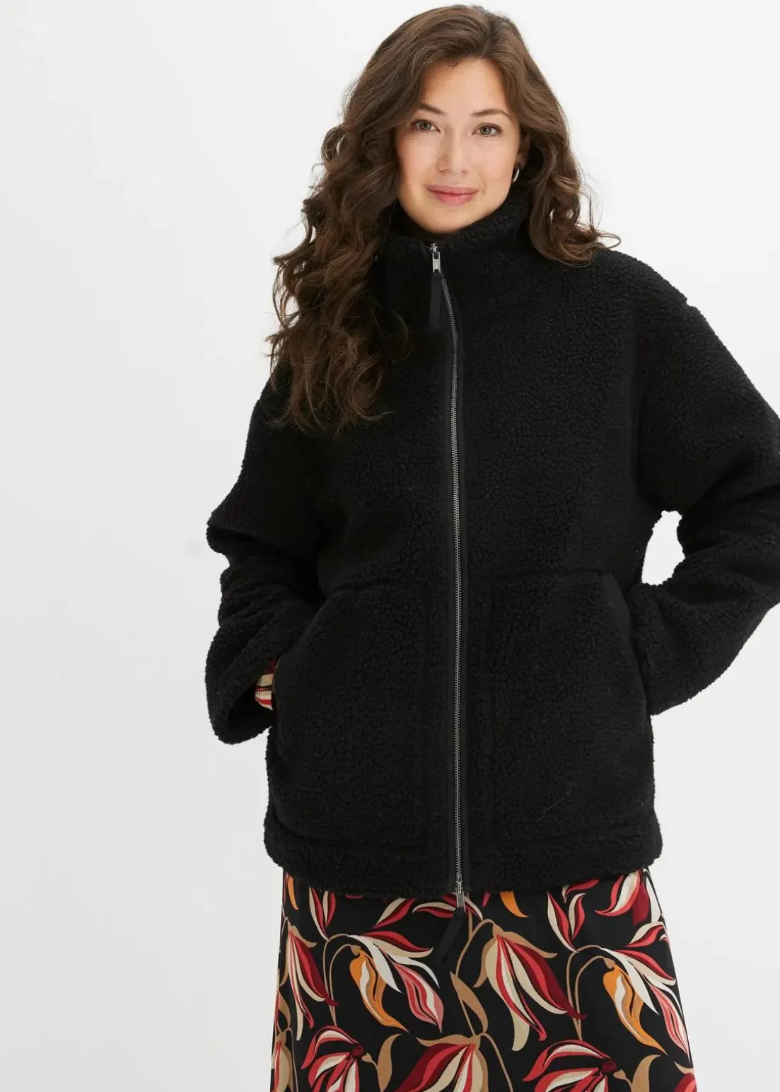 Oversized Teddy-Fleece Jacke mit seitlichen Eingrifftaschen