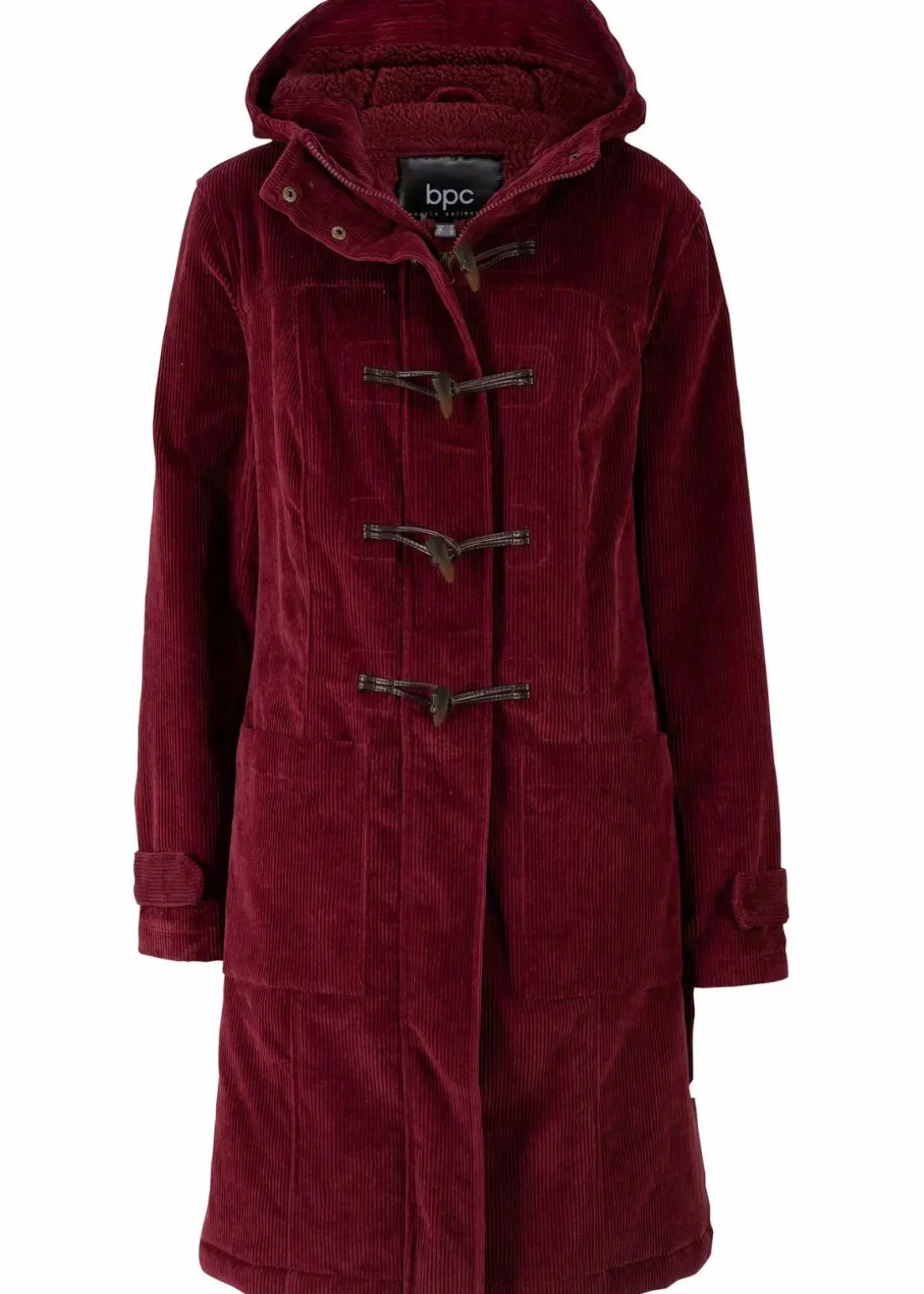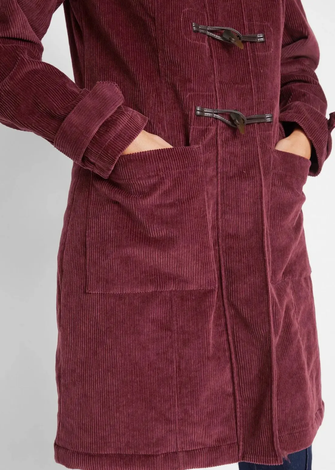 Gefütterter Cord-Dufflecoat mit Kapuze und Knebelknöpfen