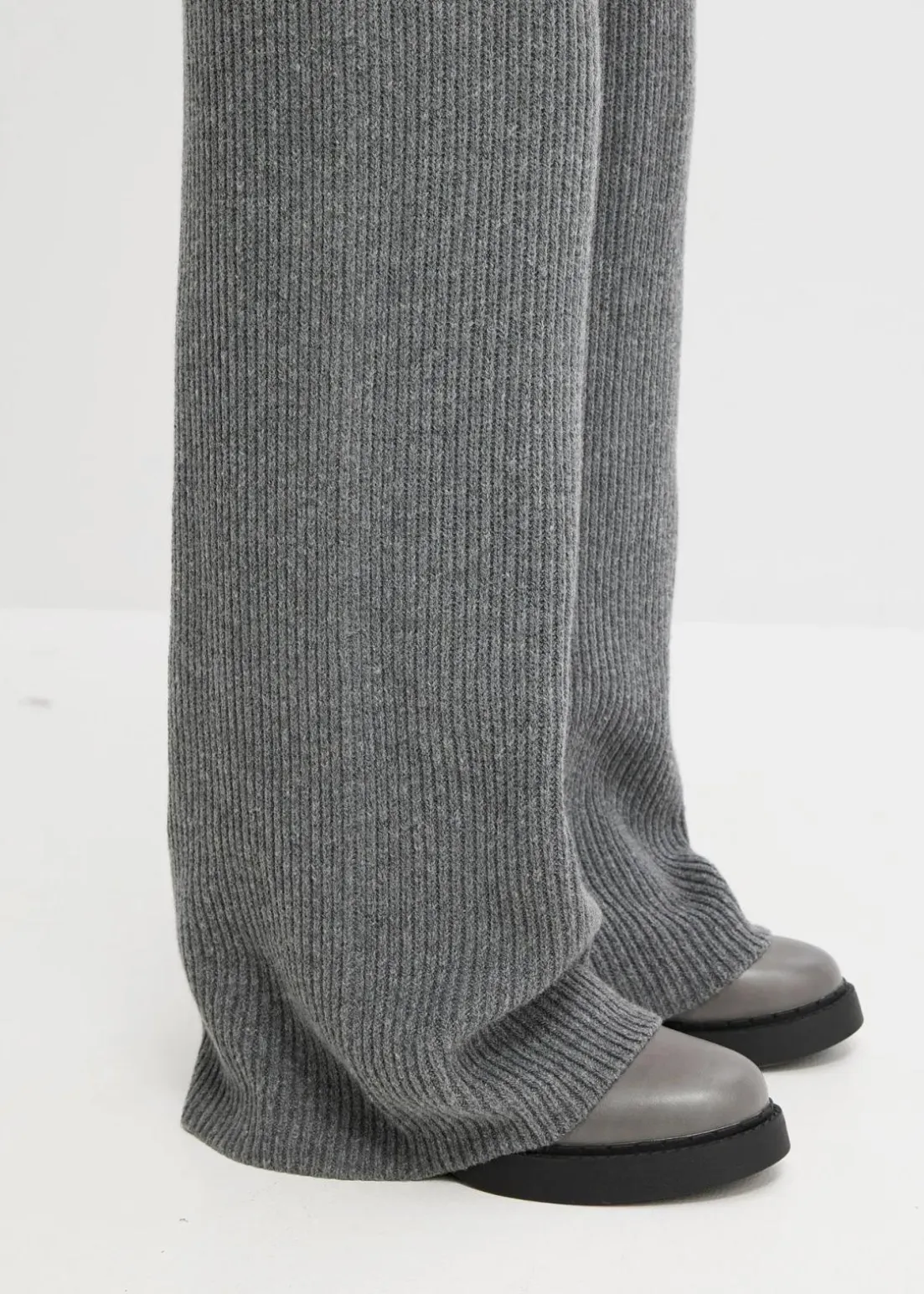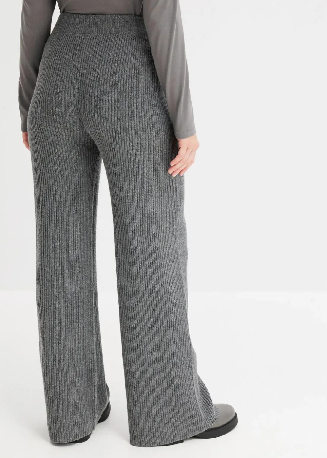 Schöne Hose aus Rippstrick wirkt durch den breiten Bund formgebend