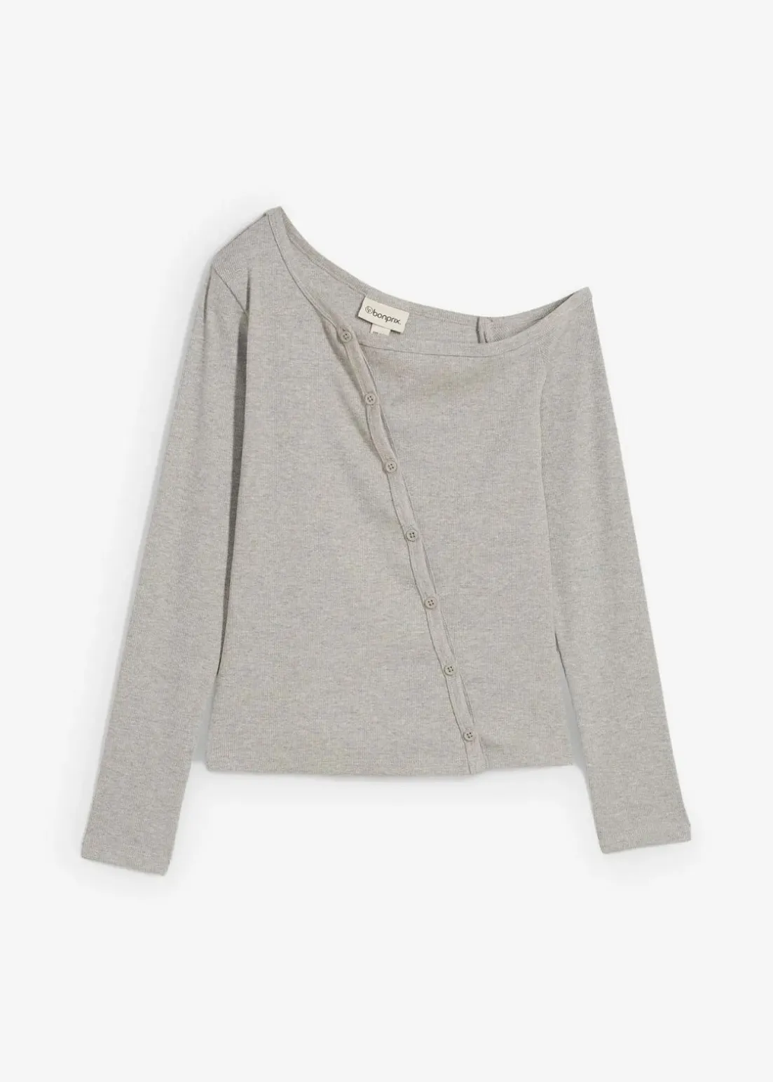 Geripptes Langarmshirt mit Knopfleiste