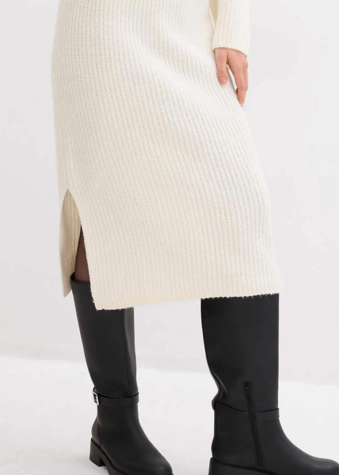 Mit asymmetrischem Ausschnitt und Schlitz am Saum