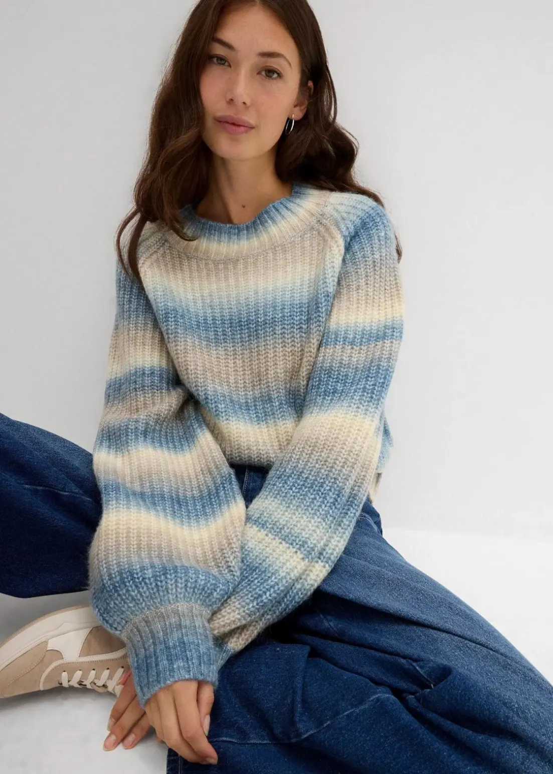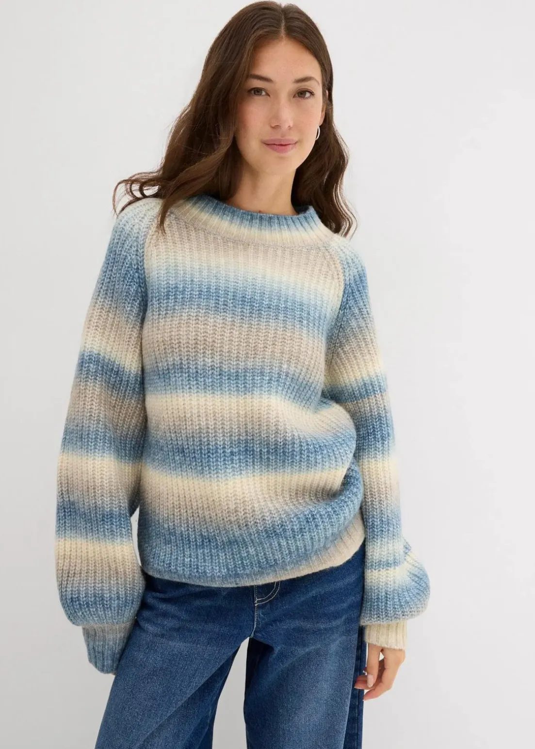 Lässiger Grobstrick-Pullover aus weichem Woll-Mix mit Farbverlauf