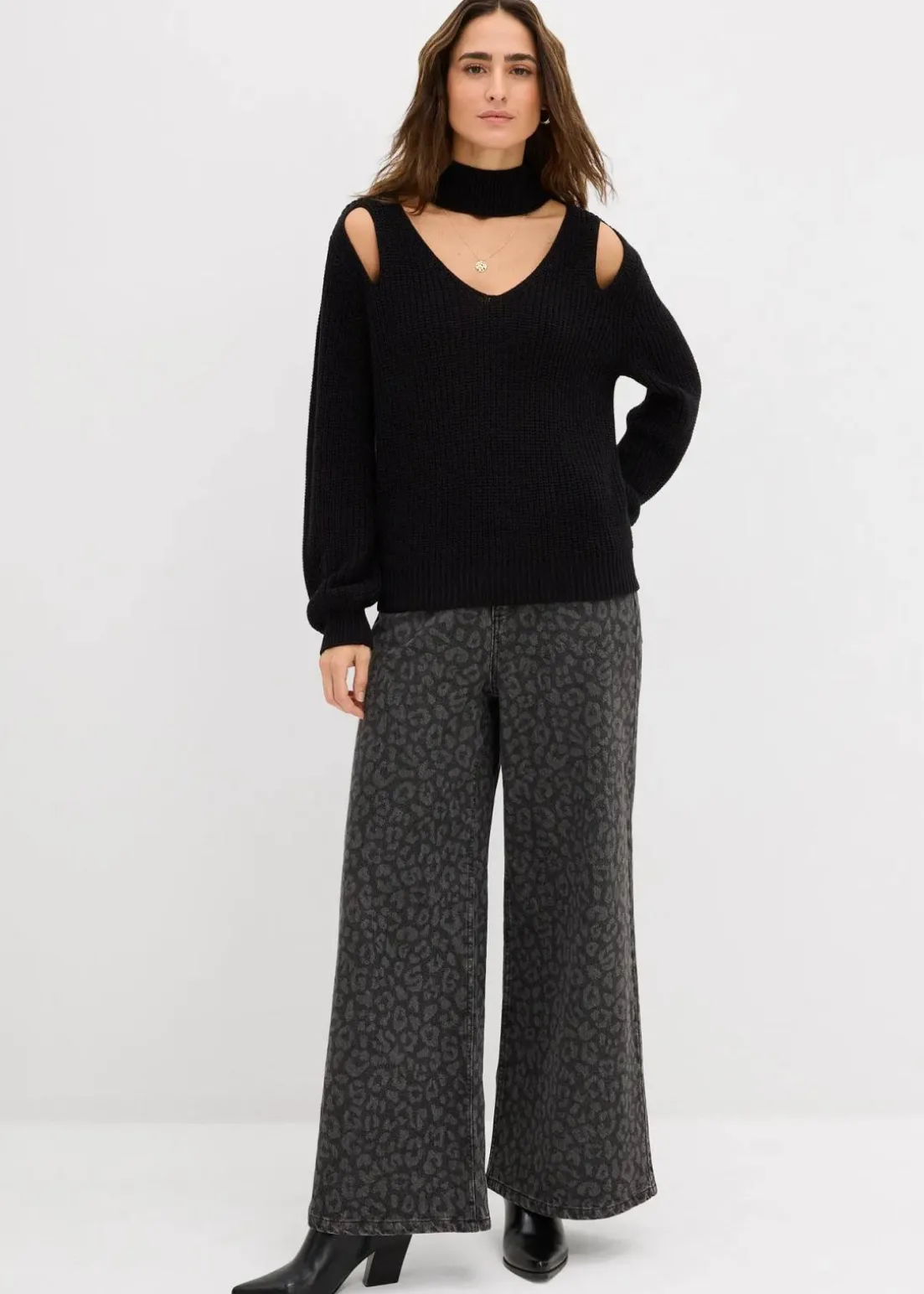 Trendiger Grobstrick-Pullover mit Cut Outs