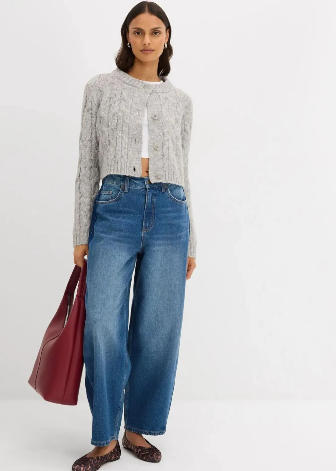 Lässige Grobstrickjacke mit Zopfmuster aus weichem Woll-Mix