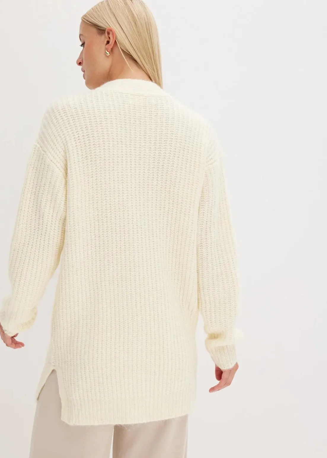Locker geschnittene Strickjacke mit Wollanteil