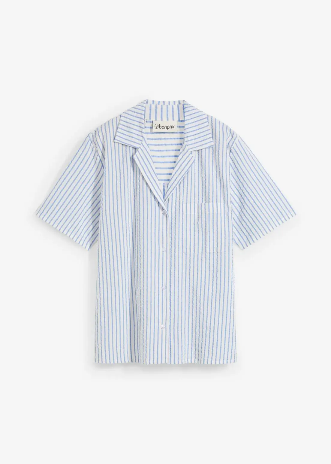 Kurzarmhemd mit luftiger Seersucker-Textur, mit einem Reverskragen, einer aufgesetzten Brusttasche und leicht glänzenden Knöpfen